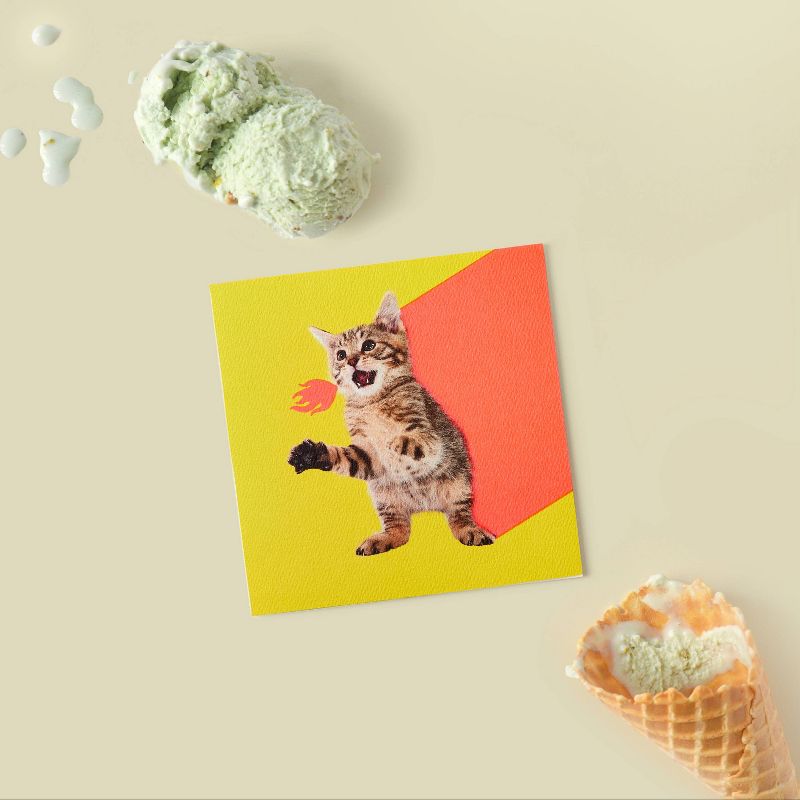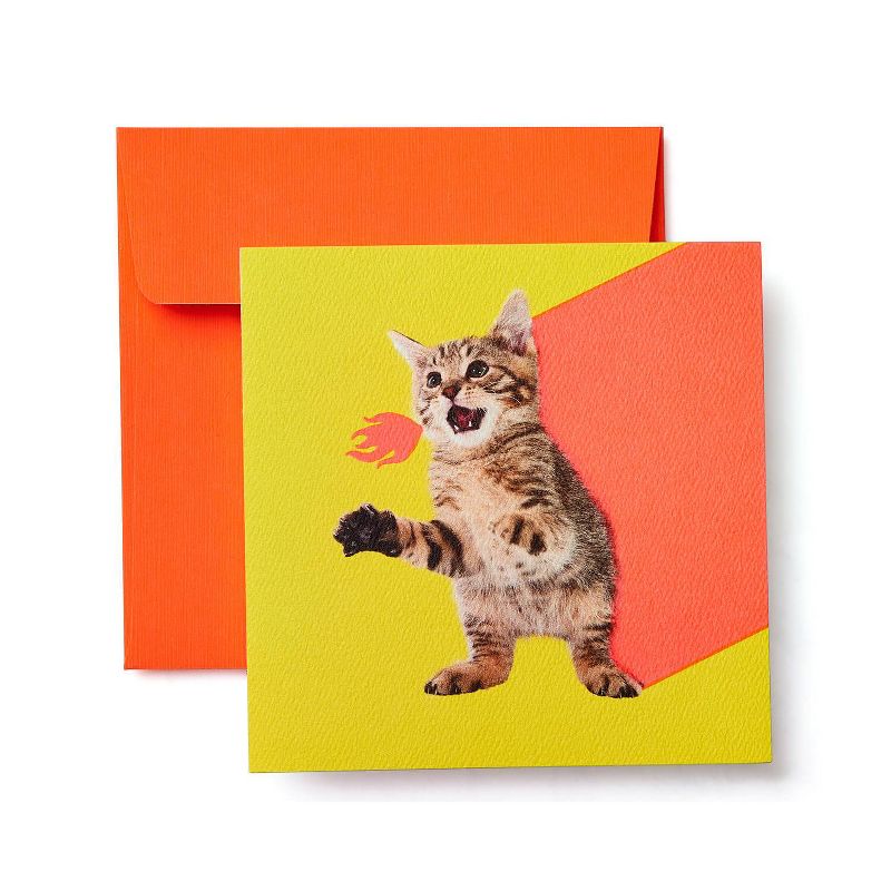 Light up someone's day with a Present Company card by American Greetings. Featuring a quirky kitten and bright, fiery graphics, this blank card is ideal for writing your own thinking of you, birthday and funny birthday greetings. A paw-some cat card for a friend, kid, pet owner or anyone who deserves a laugh, the fun square shape comes with a neon orange envelope and unique seal printed with a phrase to match the art. Thick, cotton-blend paper stock adds quality and heft. With so many amazing people in your life, Present Company is here to help you connect in purr-fect ways.