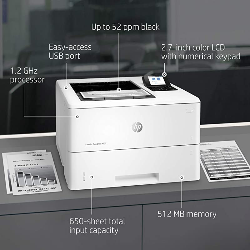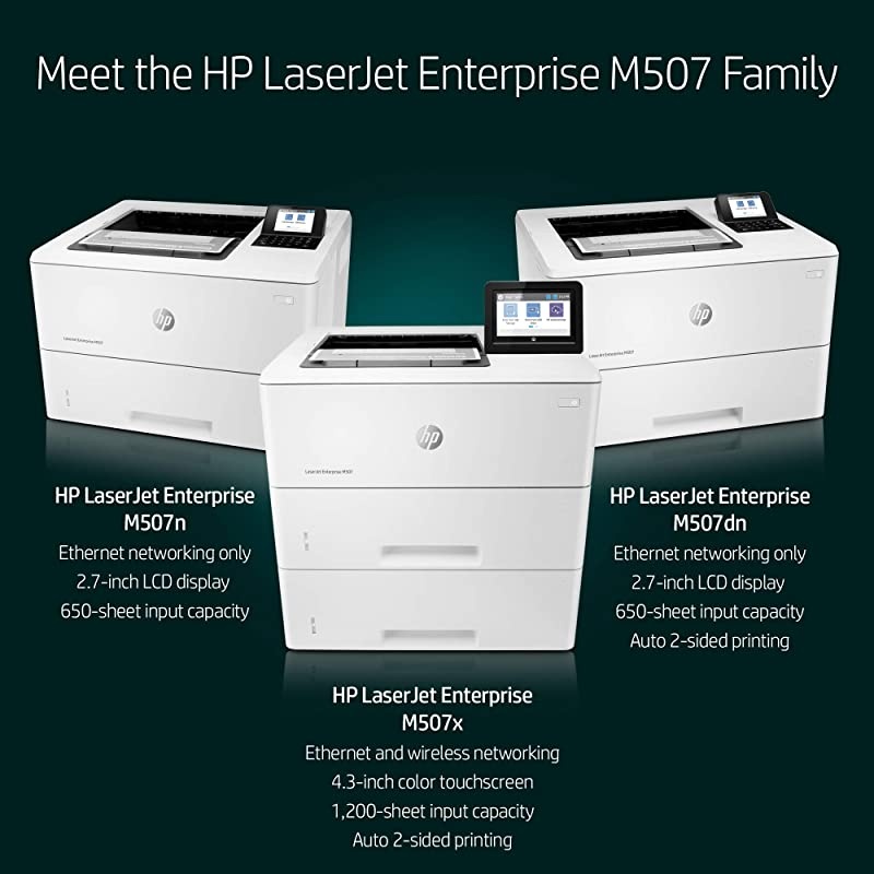 Model: M507nRedefine long-term expectations with the LaserJet Enterprise M507n. This monochrome laser printer is designed to keep up with the demands of growing business, with the world's most secure printing and technology that saves up to 29% energy over prior products with JetIntelligence toner. Help get more control with easy-to-use features, a robust management system, and solutions that keep business moving.