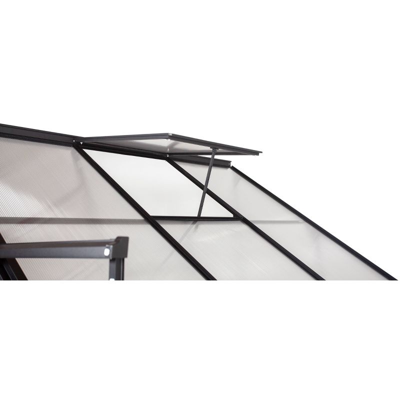 This spacious and durable lean-to greenhouse is the perfect solution for year round protection and fun. The Lean-to Greenhouse offers outstanding economic value, making it an excellent choice for individuals with limited garden space or those appreciating easy access to gardening from the comfort of their home. The stable and attractive structure adapts to any setting and can be placed on any flat and level surface whether soil, gravel, concrete or paving slabs. The aluminium frame, premium slide-in panels, and stainless steel nuts and bolts are designed for strength, stability and endurance; with a high tech powder coating that prevents rusting, tarnishing or fading. The polycarbonate panels are safe and easy to handle, and make your greenhouse shockproof and UV resistant. Every element of this greenhouse has been designed and tested free of any hazardous elements, even by California's standards. The structure maintains an even temperature within the range of -25° to 60°C, providing a protected growing environment with proper insulation from frost. Featuring a sliding door for maximum easy access and additional ventilation and a roof vent to ensure proper air circulation and humidity control; With all these fantastic features, the aluminium lean-to greenhouse will undoubtedly provide an enjoyable and reliable growing experience for all! The greenhouse components come flat packed and require home assembly by at least two confident DIYers. An included interactive instruction manual app for your smartphone or tablet helps to guide you in easy and quick assembly.