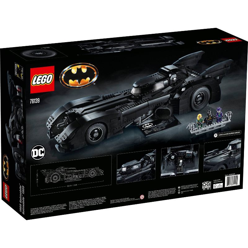 Batman fans and anyone who appreciates cool cars will love the LEGO DC Batman 76139 1989 Batmobile super-hero toy car. This beautifully detailed LEGO brick construction toy replicates the classic curves of the iconic Batmobile, as seen in the 1989 Batman movie. Measuring over 60cm long and built from 3,306 pieces, the model offers a challenging and rewarding build. Die-hard fans will love authentic features such as the slide-open cockpit with a wraparound windshield element, 2 pop-up machine guns (activated by turning the turbine exhaust) and decorative grappling hooks on each side of the vehicle. The model car comes with a rotating display stand (with an attached information plate with 1989 Batmobile statistics) for ease of viewing from any angle. A must-have for Batman fans, this Batmobile LEGO set also includes 3—a Batman figure with a cape that matches his 1989 movie outfit, The Joker action figure and Vicki Vale figure—plus a brick-built minifigure display stand.