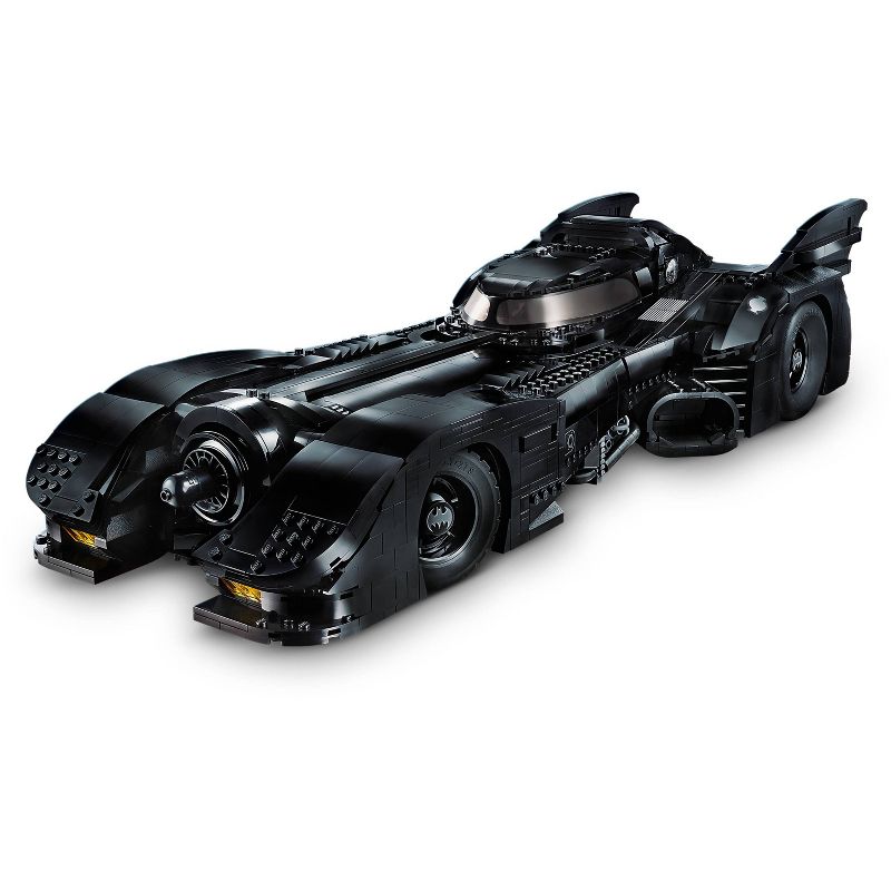 •Build a stunning LEGO version of the iconic Batmobile from the 1989 Batman movie, featuring a slide-open, dual minifigure cockpit and 2 hidden machine guns with a pop-up function, then show it off on the rotating model car display stand!