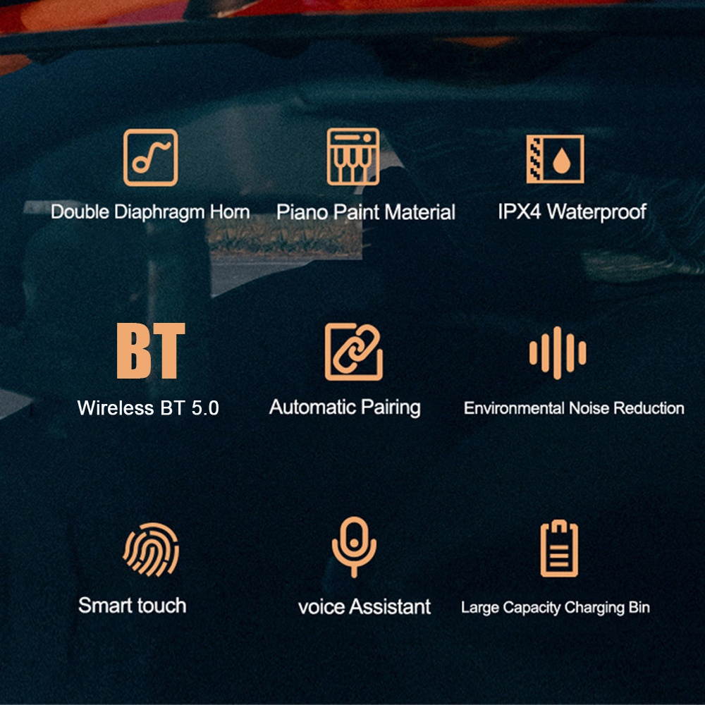 Features: BT 5.0 technology ensures higher data transfer speed, stable and fast connection, and low power consumption. True wireless dual-ear design, left and right earphone channels are separated. It can be used solely or in pairs. Touch control design, no more pressure on your ears. Easy to control music and calls, and activate voice assistant. Built-in Mic on both earbuds with intelligent noise reduction delivers clearer talking sound in stereo mode. A 250mAh charging case can charge and store the earbuds. Supports 12 hours of music playing time in total. 3.6 g lightweight and mini size fit well to your ear canal, provides a long time wearing comfort and stability when doing sports.