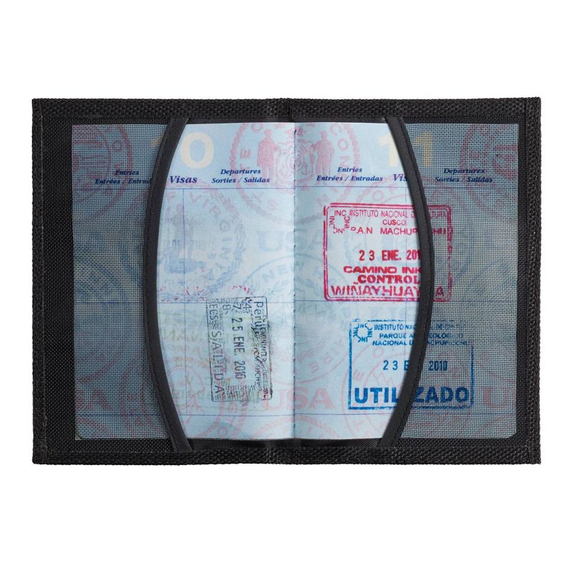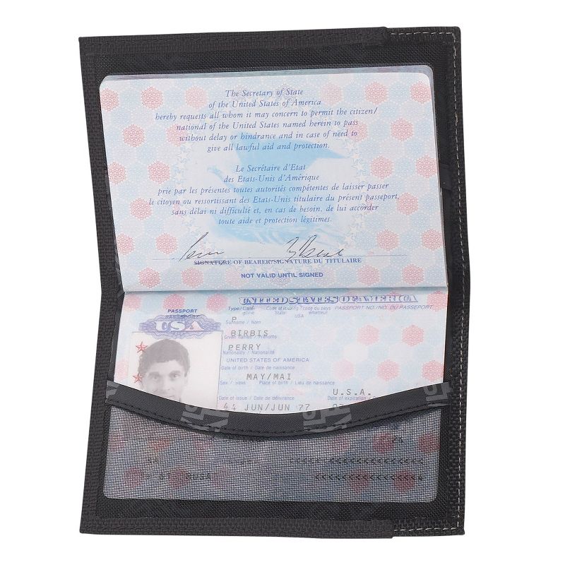 This sleek unisex passport holder not only protects your passport from the wear and tear of traveling, but effectively blocks unauthorized RFID transmissions as well. It's an easy way to conceal your national identity so others do not know where you're traveling to or from. Additionally, the rugged nylon design shields your passport even if you're a frequent traveler. The transparent mesh windows allow you to secure your passport whether it's open or closed and make it easy to show your ID page to airport personnel or to other individuals that require your identification. When you're between destinations, simply slip it into your carry-on bag, luggage, purse, backpack, etc. so it's still easily accessible. Most importantly, you can store your passport in this holder without worrying that concealed RFID scanners are reading your confidential information.As a lightweight, compact, and durable solution, this no-fuss passport case keeps your passport undamaged and protected whether you're going to the big city or to a rustic village abroad.