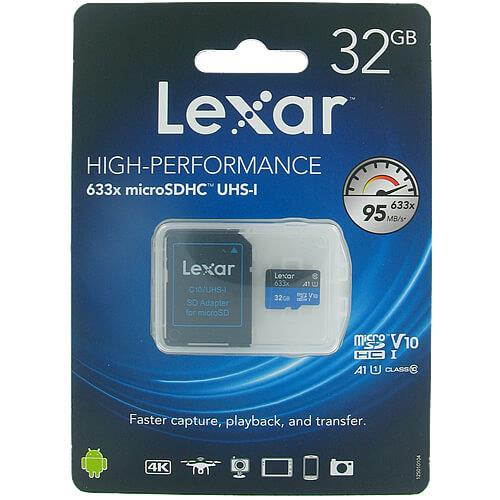 Designed for your smartphones, tablets, or action cameras, Lexar High-Performance 633x microSDHC/SDXCÂ UHS-I cards let you quickly capture, playback, and transfer a large number of multimedia files, including 1080p Full-HD, 3D, and 4K video. These Class 10 cards leverage UHS-I technology to deliver high-speed performance. Includes SD adapter for easy file transfer.