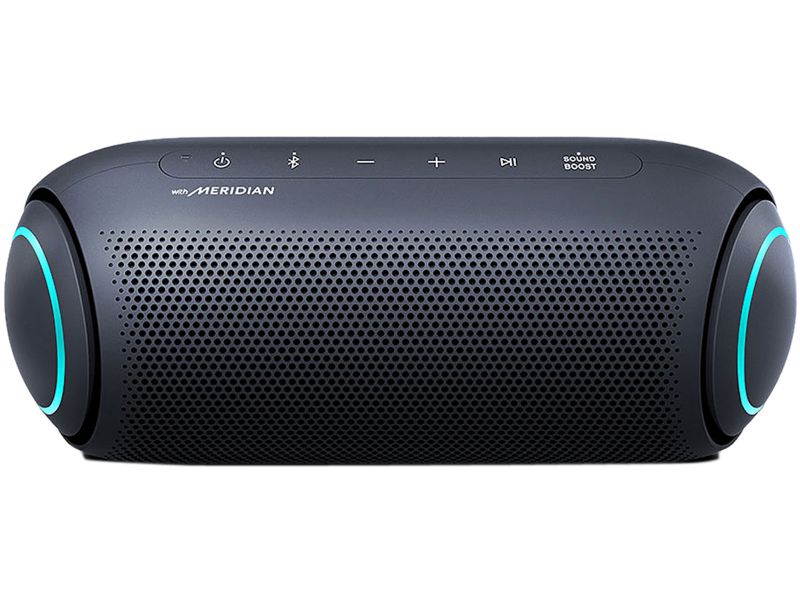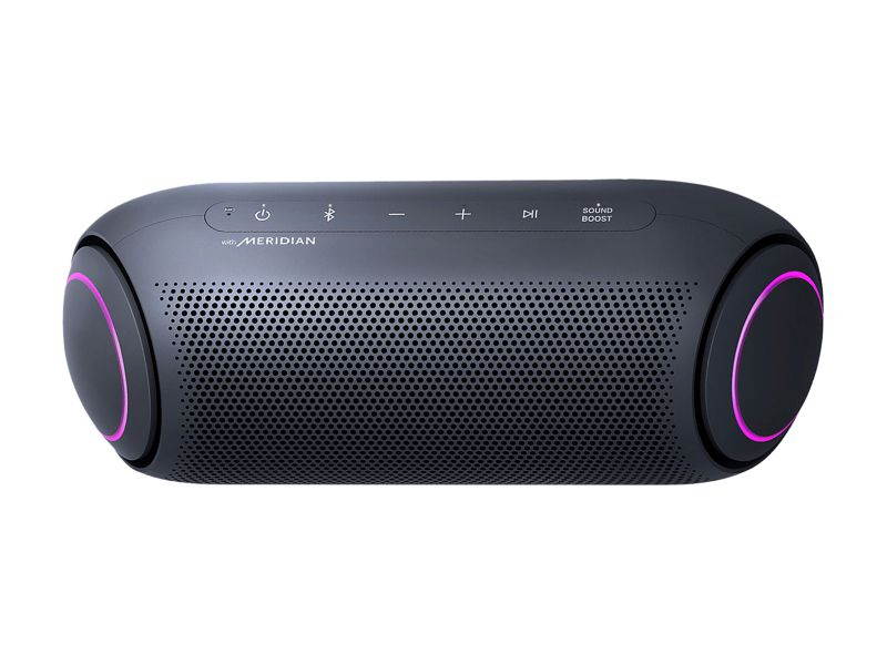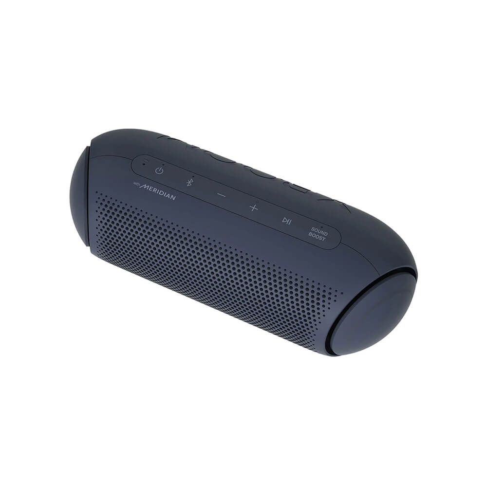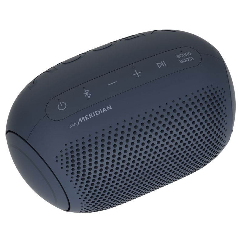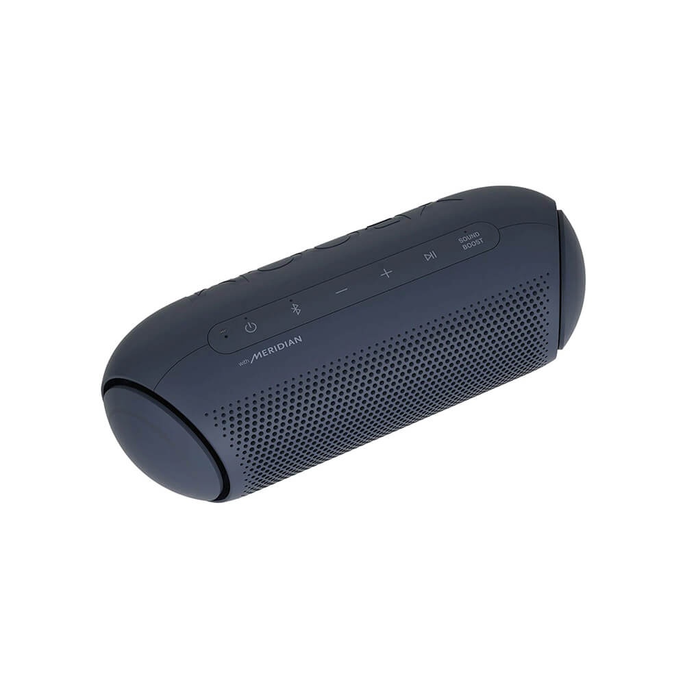 LG XBOOM Go PL2A new look for balanced soundLG XBOOM Go PL2A sleek, portable, powerful speakerTake the party with you. Enjoy up to 10 hours of playback, IPX5 water resistance* and high-quality AAC audio formats. Meridian technology combines ith a passive radiator for rich sound even at the highest volume. Connecting is always easy with both Bluetooth and voice command capabilities. New XBOOM GoExceptional audio on the goAmp up the party with room-filling sound. Widen the sound field with Sound Boost EQ mode. LG teamed up with Meridian— the leader in high-resolution audio— for powerful bass and clear vocals with less distortion even at the highest volume.
