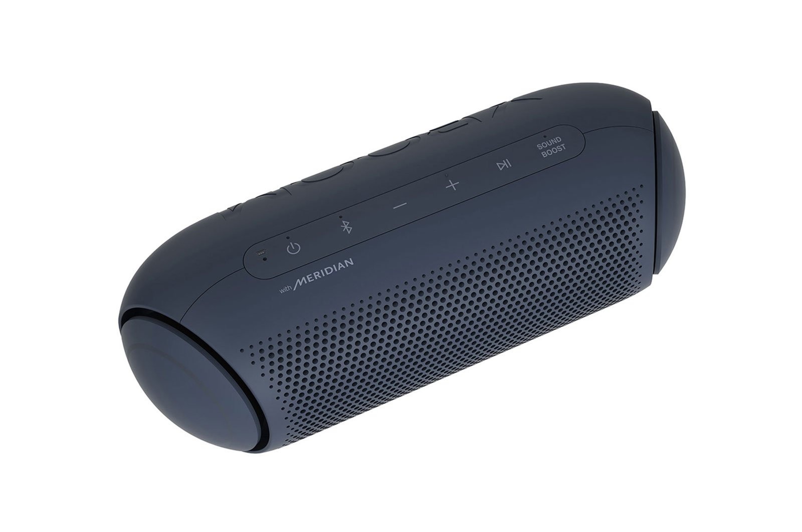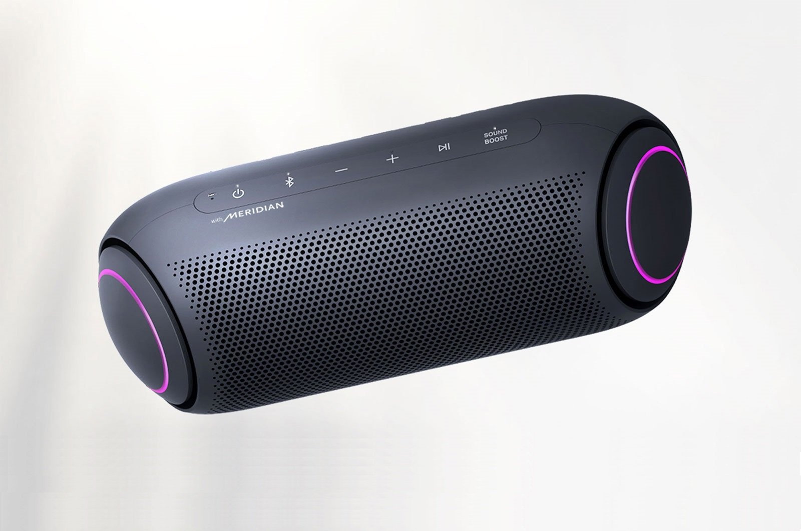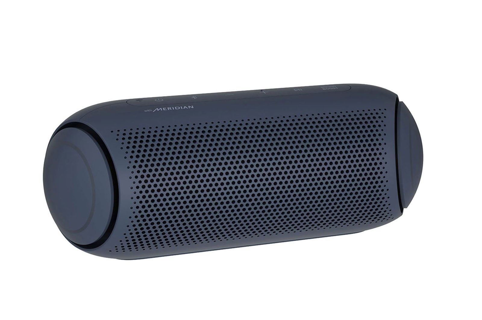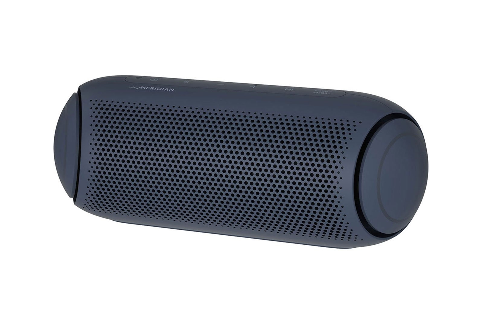 LG XBOOM Go PL2A new look for balanced soundLG XBOOM Go PL2A sleek, portable, powerful speakerTake the party with you. Enjoy up to 10 hours of playback, IPX5 water resistance* and high-quality AAC audio formats. Meridian technology combines ith a passive radiator for rich sound even at the highest volume. Connecting is always easy with both Bluetooth and voice command capabilities. New XBOOM GoExceptional audio on the goAmp up the party with room-filling sound. Widen the sound field with Sound Boost EQ mode. LG teamed up with Meridian— the leader in high-resolution audio— for powerful bass and clear vocals with less distortion even at the highest volume.