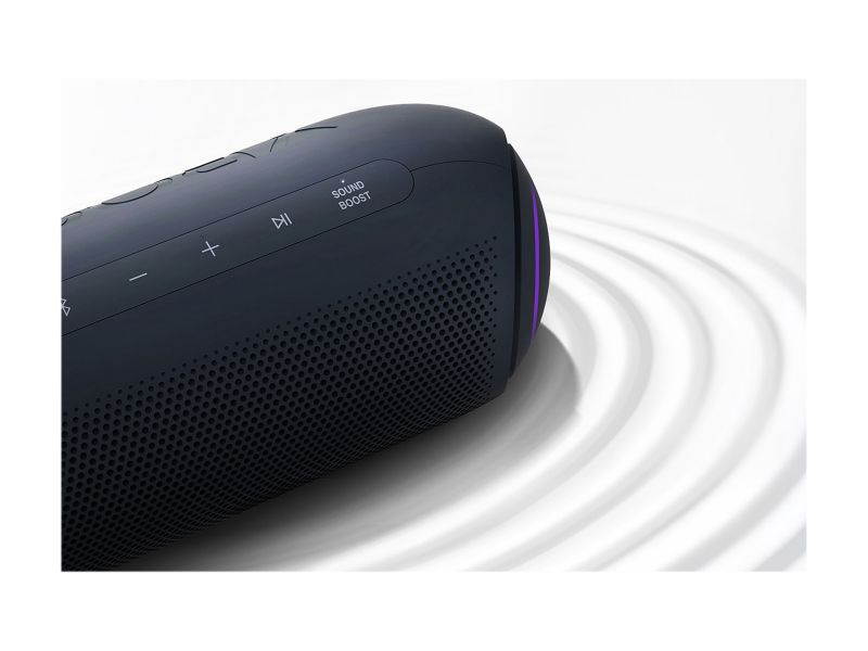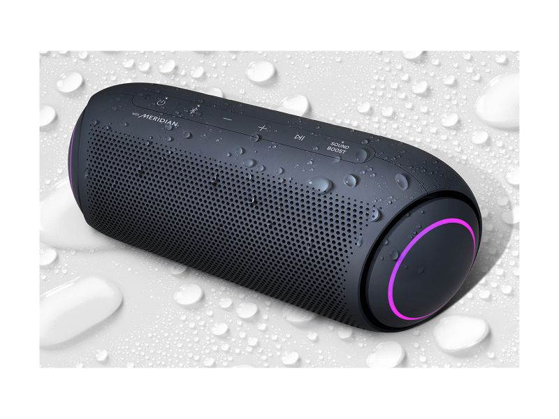 New XBOOM GoExceptional audio on the goAmp up the party with room-filling sound. Widen the sound field with Sound Boost EQ mode. LG teamed up with Meridian— the leader in high-resolution audio— for powerful bass and clear vocals with less distortion even at the highest volume. Sound BoostSuperior sound qualityEnjoy Advanced Audio Coding (AAC) with LG XBOOM Go. AAC is the default coding standard for lossy digital audio compression. It's supported by both iPhone and Android phones and generally achieves higher sound quality than MP3 at the same bit rate. IPX5Pool party-proofKeep jamming without the worry of water hitting your speaker.