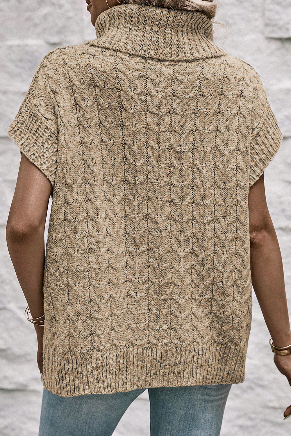 Light Beige Turtleneck Short Dolman Sleeve Cable Knit Sweater