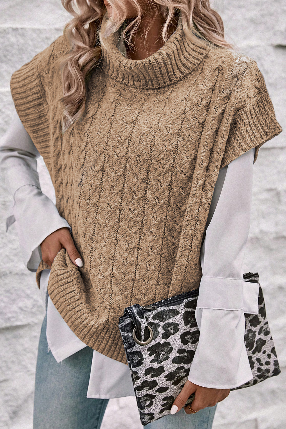 The cable knit texture adds a contemporary touch, while the turtleneck design offers a warm and cozy feel.