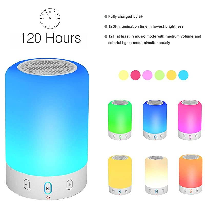 ***** **********Best Quality Guranteed. *****Small Size with Powerful Volume and Immersive Sound. This Bluetooth stereo Subwoofer with TF Card Slot and FM radio Function. Compatible with most Bluetooth Devices and perfect for home audio player and outdoor activities speaker. *****Six Light color can be changed by touching the circular sensor on the top of the lamp. and you could set timing for Light and Music, Press the time setting button to set 10/ 20/ 30/ 40/ 50/ 60/ 70/ 80/ 90/ 120 minutes. The lamp & music will be shut down automatically when time is up.