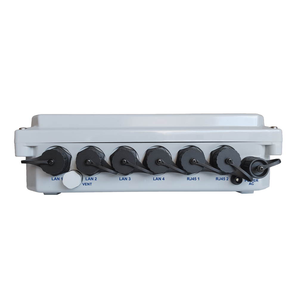 Inscape Data's LinkPowerâ„¢ LPS840AF-T2 is the All Weather 6-Port Gigabit PoE (Power over Ethernet) Switch with two Gigabit RJ45 Uplink Ports is the industry first outdoor weatherproof high speed gigabit Ethernet switch that delivers data and power over one single network cable protected with an IP68 compliant weatherproof enclosure. The LPS840AF-T2 all weather Gigabit PoE switch is designed for industrial and commercial applications, e. g., video surveillance, remote security, wireles mesh, and carrier wifi installations. The switch is featured with individual port connector for each of the PoE ports and power port.