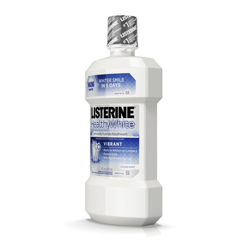 Listerine Healthy White Vibrant Multi-Action Fluoride Anticavity Mouthwash is a mouth rinse with extra teeth whitening power that starts to work on contact for a brighter smile in 5 days*. This teeth-whitening mouthwash with sodium fluoride also helps prevent cavities. With dynamic foaming action, the daily oral rinse works to effectively whiten teeth, even in hard-to-reach places, without damaging enamel. Designed to be used as part of a regular oral care routine twice each day, the refreshing Clean Mint-flavored mouthwash also kills the germs that cause bad breath.*Individual results may vary.