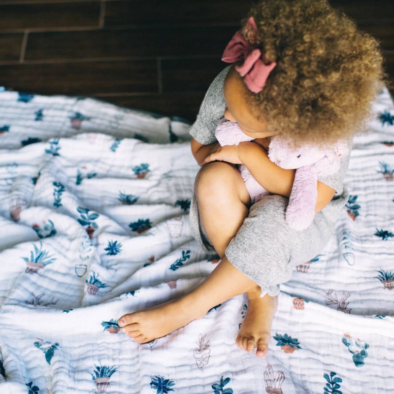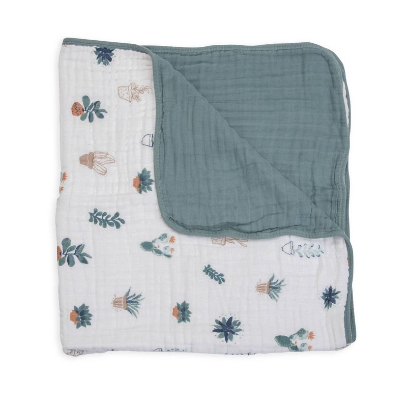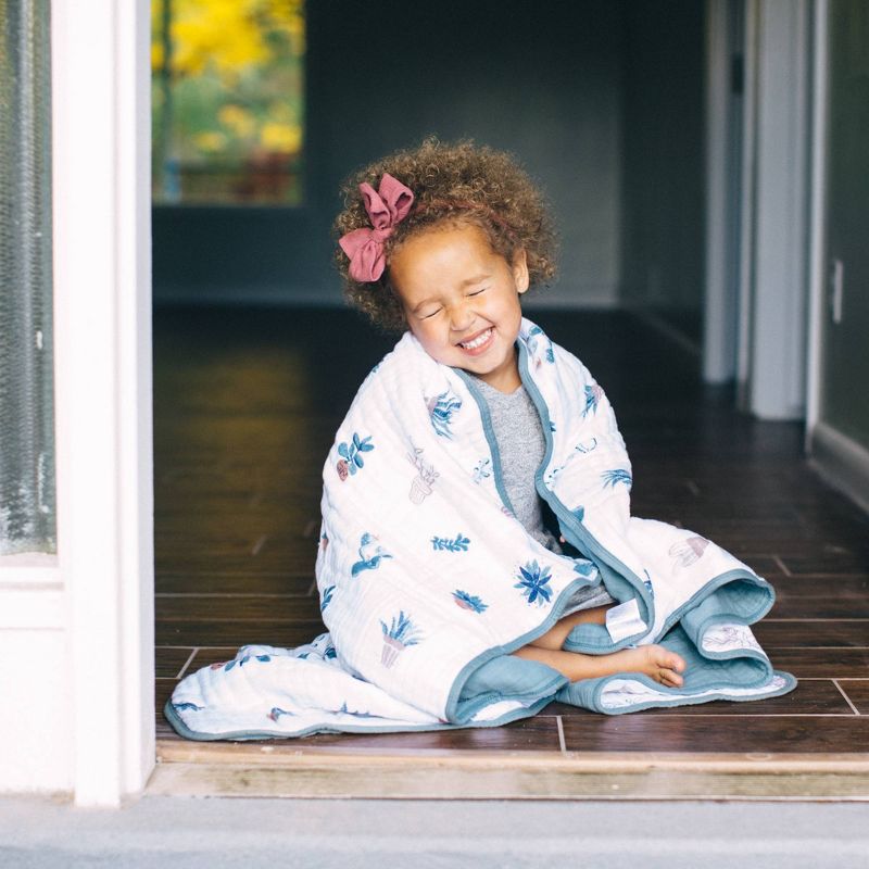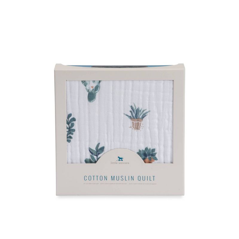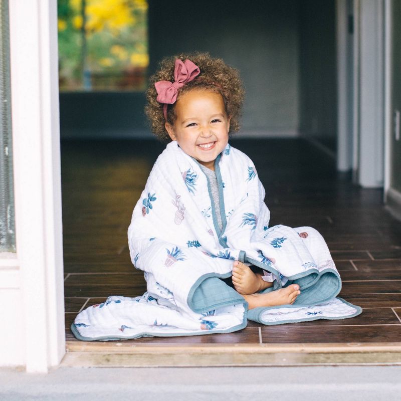 Made for nap time, playtime and everything in between, this cozy muslin quilt is an everyday essential blanket for babies and toddlers alike. It’s crafted from four breathable cotton muslin layers, providing warmth and comfort along with just the right amount of airflow to avoid overheating. The unique, playful prints are hand-painted, offering a stylish and memorable addition to baby’s decor. Each blanket is machine washable and comes in high quality, giftable packaging.