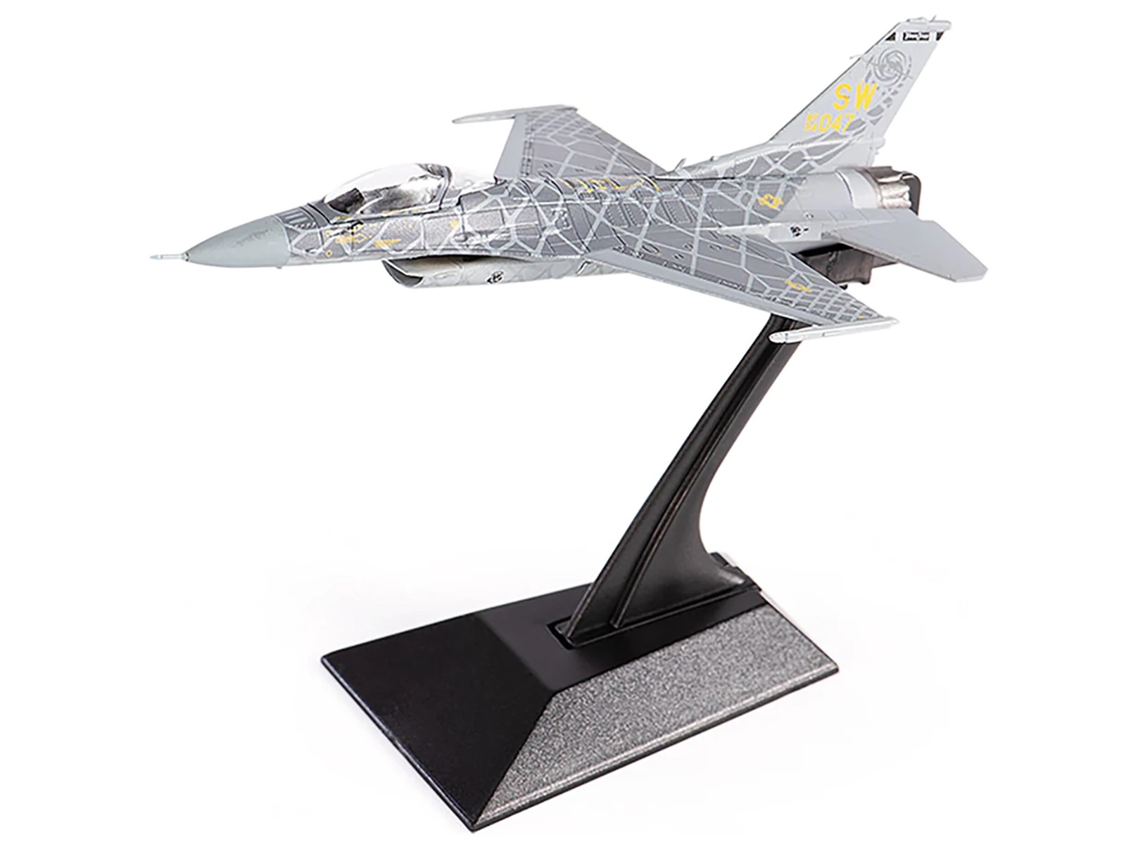 HISTORY ASPECTS:The F-16C Fighting Falcon is a highly versatile single-engine supersonic fighter aircraft that was developed by General Dynamics (now Lockheed Martin) for the United States Air Force (USAF) in the 1970s. It has since become one of the most widely used multirole fighters in the world, serving in numerous air forces around the globe.The Viper Demo Team is a USAF demonstration squadron that showcases the incredible capabilities of the F-16C Fighting Falcon. Its pilots perform a variety of precision maneuvers and aerobatics, demonstrating the aircraft's agility, speed, and power to audiences around the world.While the F-16C Fighting Falcon has seen action in numerous conflicts over the years, including the Gulf War, the Balkans, and the War on Terror, the Viper Demo Team's primary mission is to inspire and excite audiences with the aircraft's incredible capabilities.This 1:144 scale model of the F-16C Fighting Falcon USAF, Viper Demo Team, 2021, is a highly detailed replica of the real aircraft, featuring all the authentic markings and details of the Viper Demo Team's sleek and powerful aircraft. Crafted from high-quality materials, this model is built to last and makes a great addition to any aviation enthusiast's collection.If you're looking for a stunning model of one of the world's most iconic and powerful fighter aircraft, the F-16C Fighting Falcon USAF, Viper Demo Team, 2021, is an excellent choice. Its incredible design and accuracy make it a striking piece to display on your desk or bookshelf, and its association with the legendary Viper Demo Team is sure to impress anyone who sees it. Order your model today and experience the thrill of this legendary aircraft!