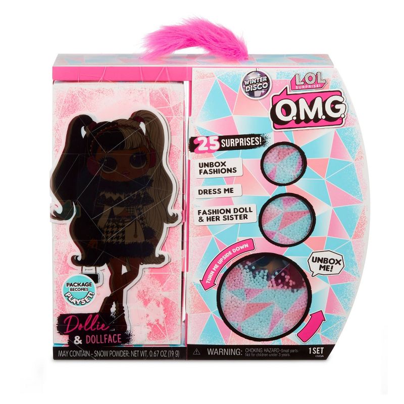 •Unbox 25 surprises with L.O.L. Surprise! O.M.G. fashion doll, Dollie, and her sister, Dollface.