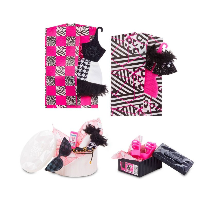 •Includes fashion doll, L.O.L. Surprise! doll, fashions, garment bags, shoes, shoebox, accessories, hat box, purse, hair brush, doll stand and reusable package playset in an all new unboxing experience.