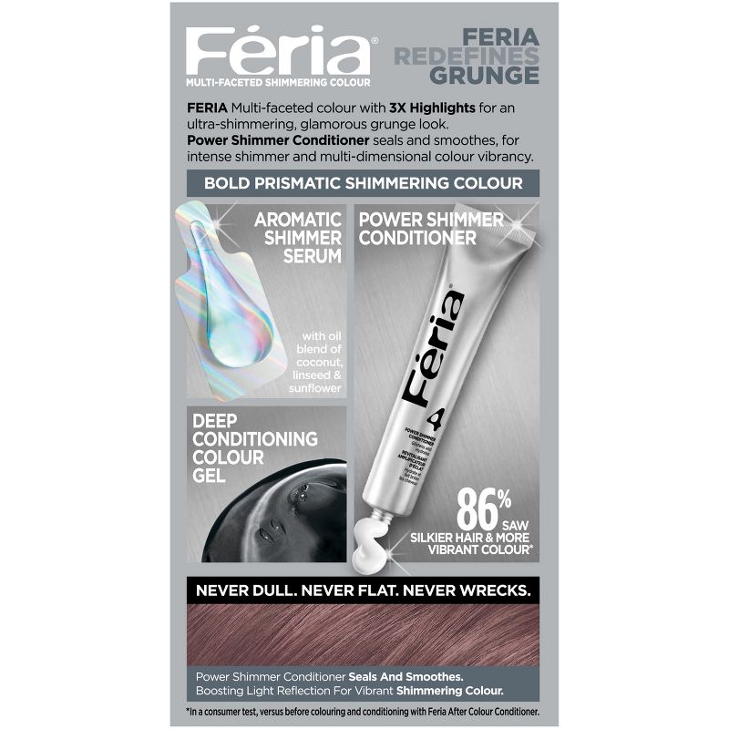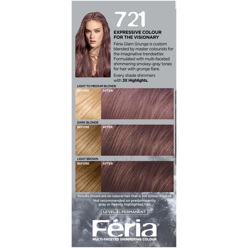 Bring some new life to your hair by mixing up your color with Feria Glam Grunge Hair Color from L'Oreal. This line is made up of on-trend hair colors that are the perfect balance between traditional colors and bright, bold hair colors. The hair color cream is easy to apply and conditions as it colors, leaving your hair with a striking new shade without drying it out. With three times the highlights, this multifaceted hair dye offers a shimmering look you'll love.