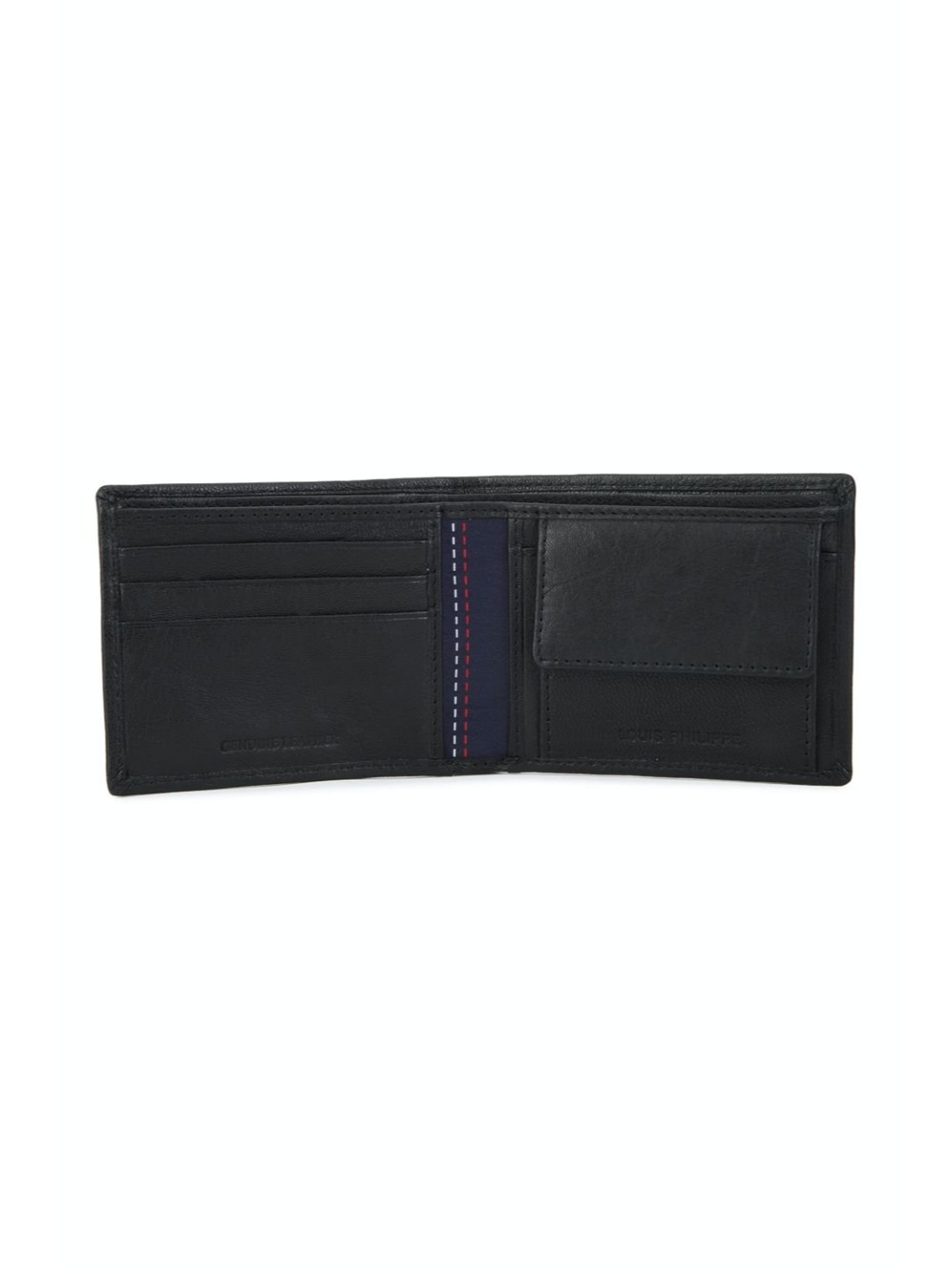 Keep your monetary essentials in place and safe with this men's wallet from Louis Philippe. Designed with perfection, this black wallets ensures easy and quick access to your stuff, whereas the leather make ensures high quality. Exuding a solid pattern, it is detailed with compartments, pockets and card slots to accommodate cash and cards in a safe manner.