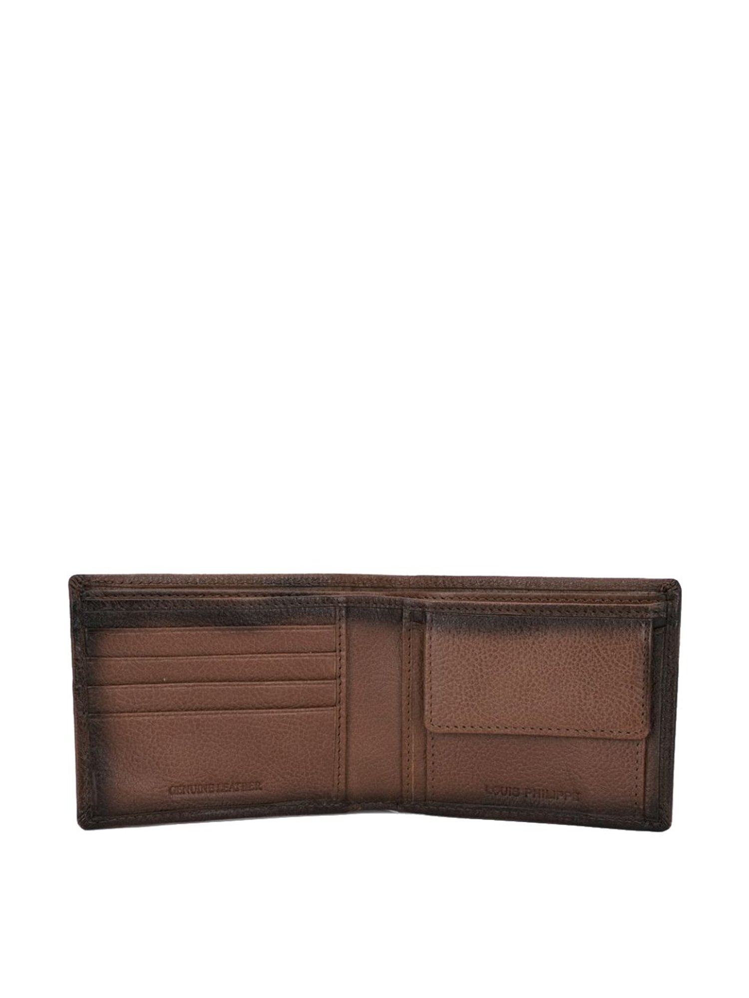 Redefine class and style with this bi-fold wallet from Louis Philippe. Designed with perfection, this brown bi-fold wallet ensures easy and quick access to your stuff, whereas the leather make ensures high quality. It exudes a printed pattern that accentuates the look of the bi-fold wallet. It is detailed with spacious compartments to accommodate cash and cards in a safe manner.