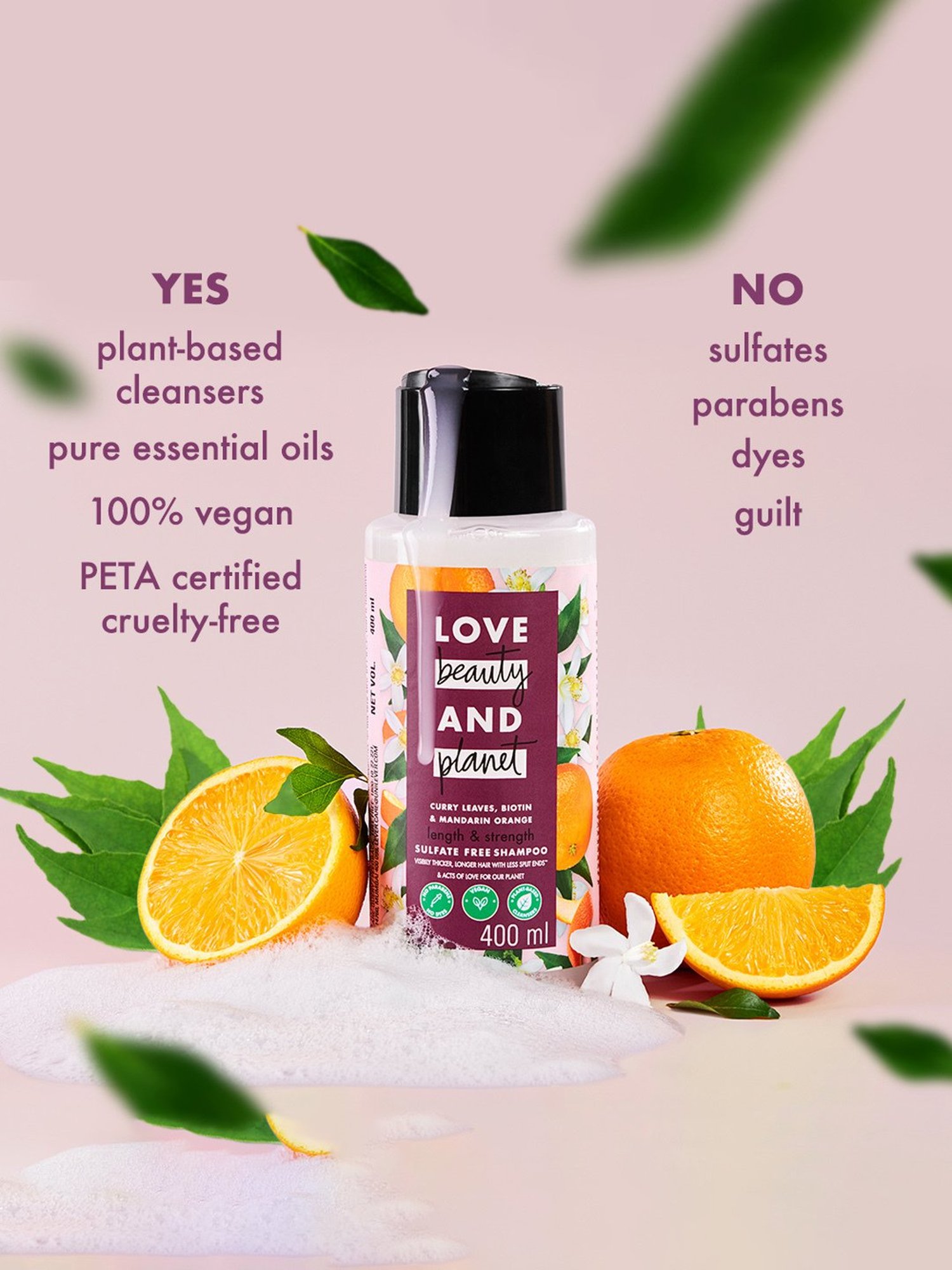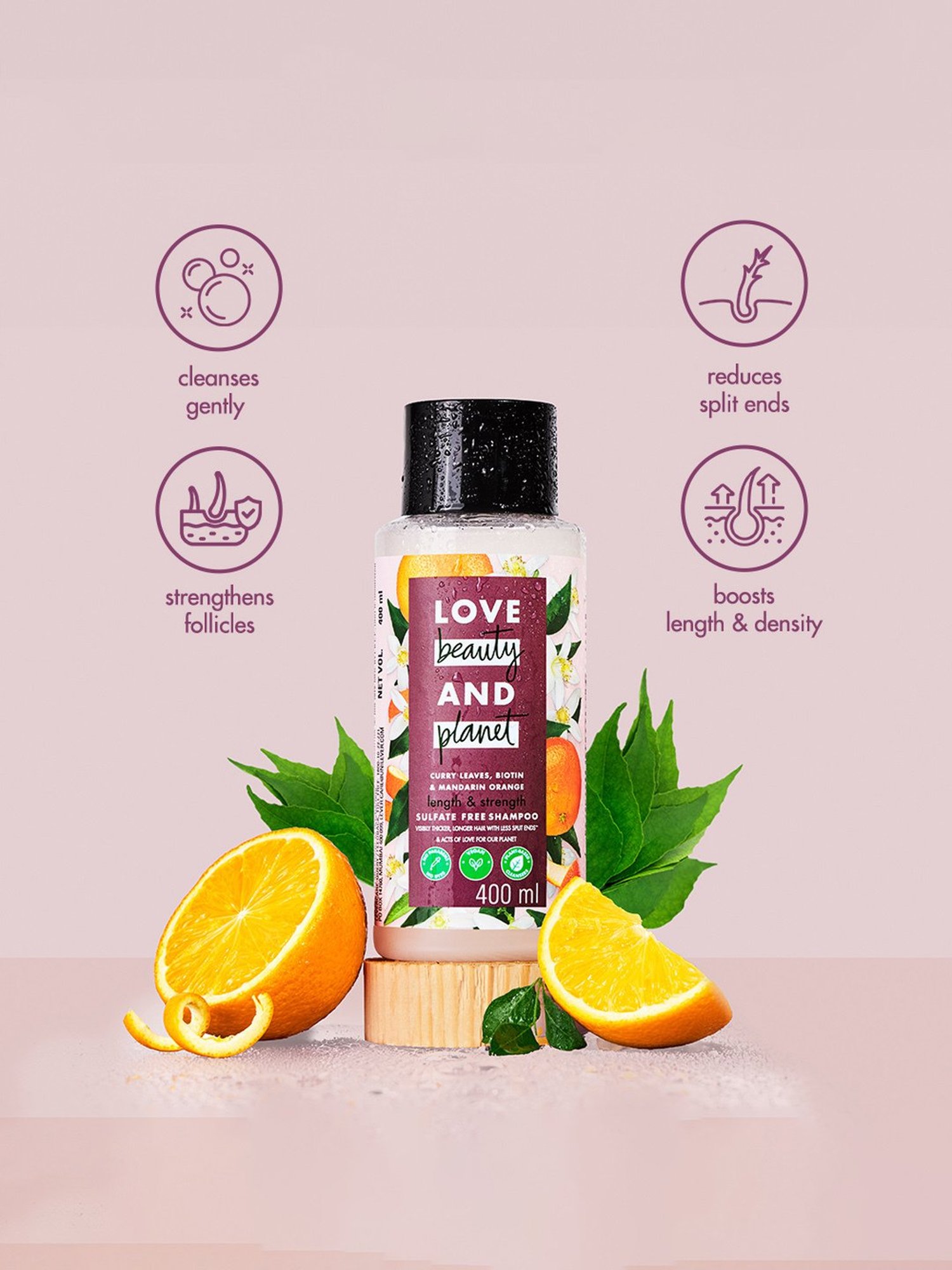 Make way for visibly thicker and longer hair with our Length and Strength Shampoo and conditioner. Our hair growth-boosting shampoo is made with plant-based cleansers, detanglers and infused with 100 percent organic coconut oil. Enjoy 15x less split ends, thicker and longer locks with a powerful mix of natural curry leaves from Daman and Diu, vegan biotin and Italian mandarin oranges.