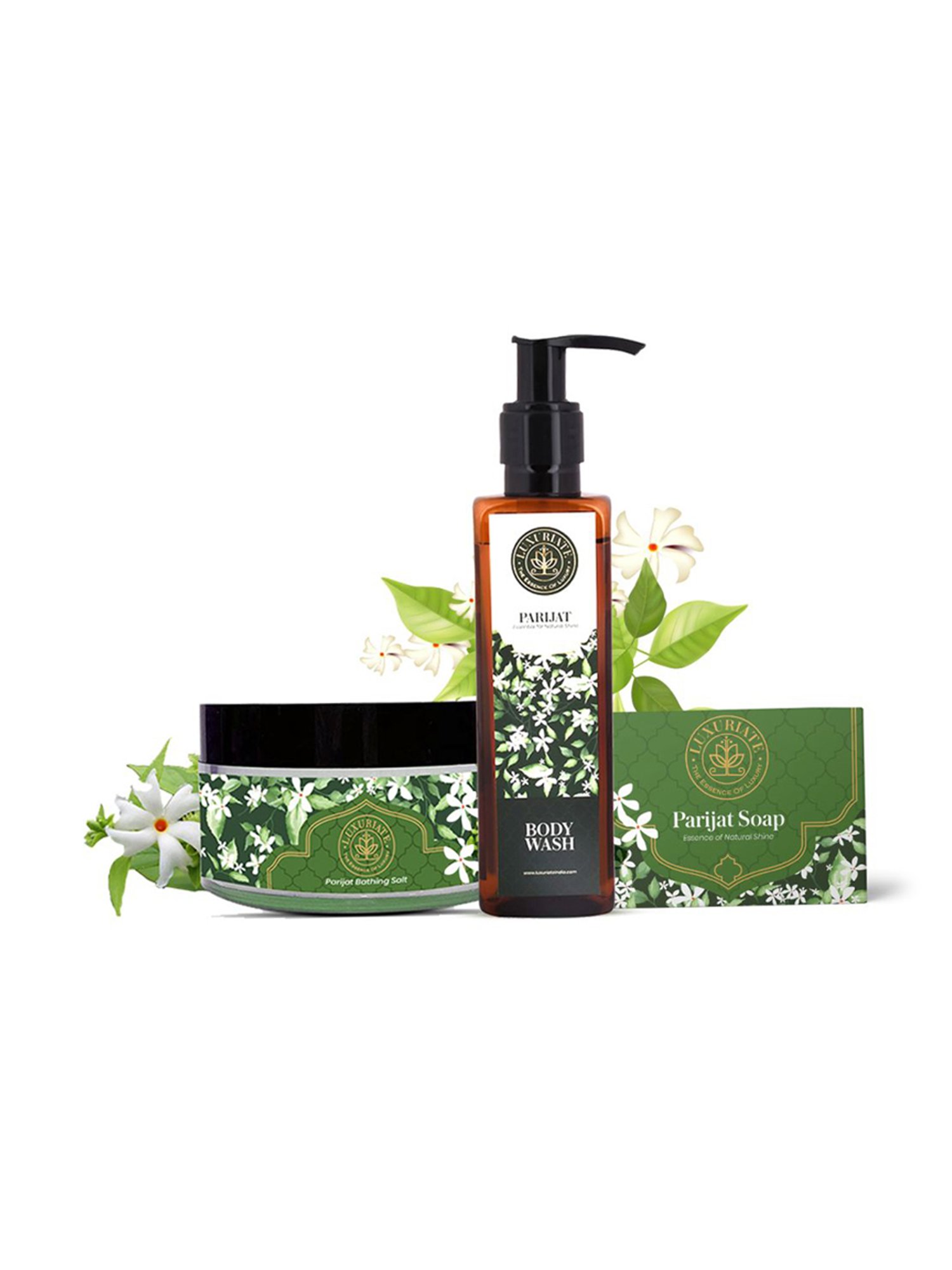 | Usage Instructions | Soap-Lather and apply generously to the skin and then gently massage. For best results,work up a rich lather and leave for 2 minutes before wash . Bathing Salt -Add 3 spoons of Parijat Bath Salt to warm water & circulate well. Settle in and soak your body or feet into the warm water. Body Wash -Apply Body Wash to the correct body parts using your hands,a soft washcloth,or loofah,then gently rub to remove dead skin. Don't scrub forcefully,as this will perpetuate dry skin. As soon as you get out of the shower,apply an organic body lotion to lock in moisture when your skin is clean and dry. |