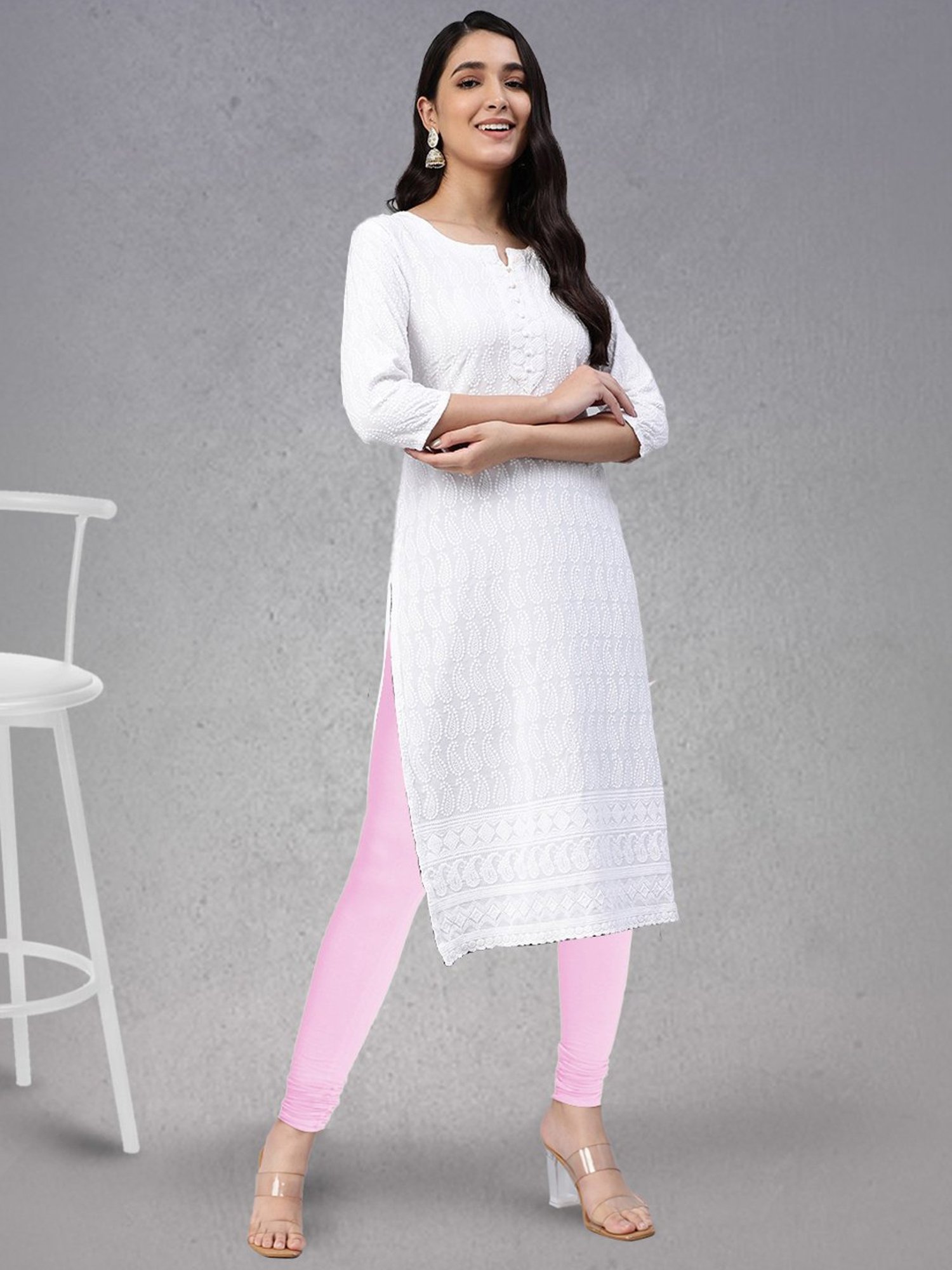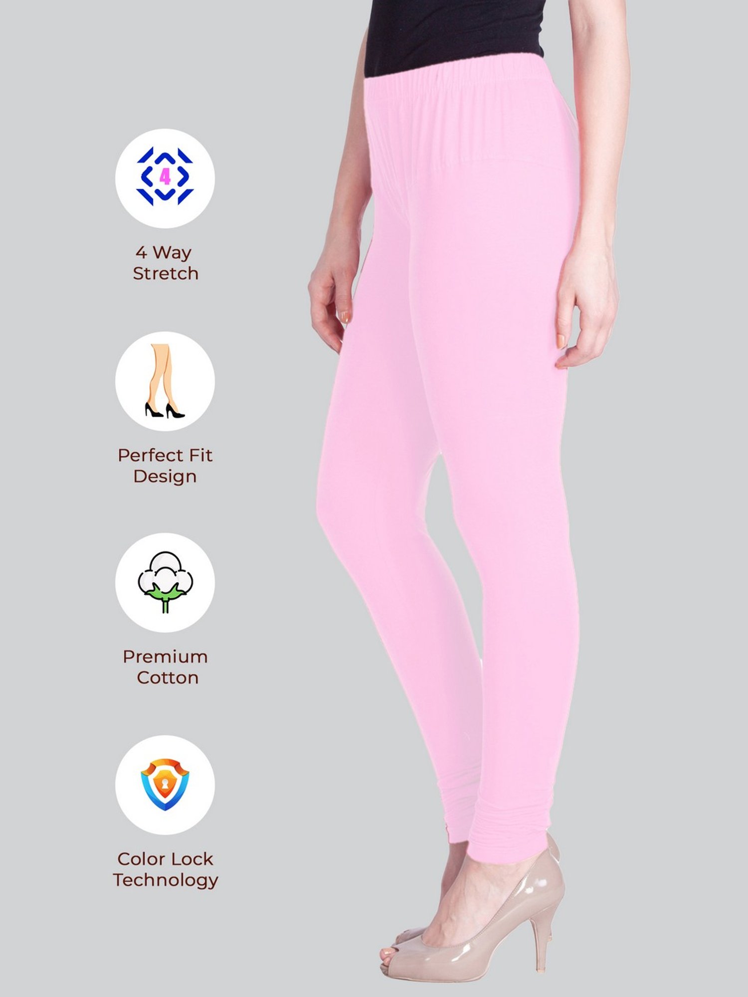 Vaunt a new trend wearing this pair of pink full length leggings from Lyra. Tailored to sartorial perfection from premium quality fabric, it assures a soft and soothing touch against the skin. Join the league of fashion elites flaunting the staple.