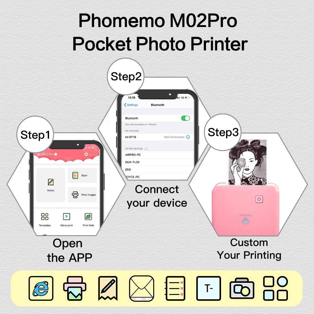Buy M02 Pro Bluetooth Thermal Printer Portable 300dpi Wireless Mini Pocket Label Printer Handheld Photo Printer for iphone in United States - Cartnear.com