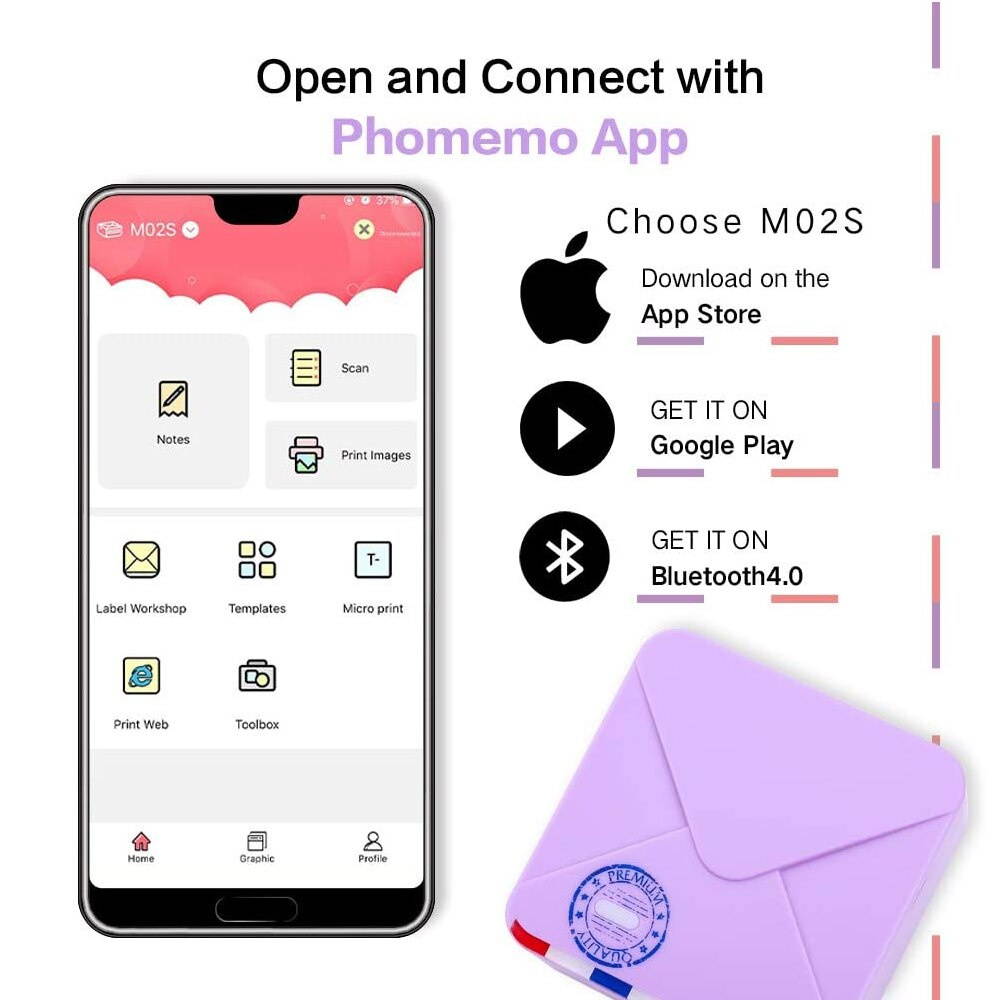 Buy M02S Photo Thermal Printer Portable Bluetooth Pocket Printer with 3 Rolls Transparent Gold Paper Mobile Phone Printer in United States - Cartnear.com