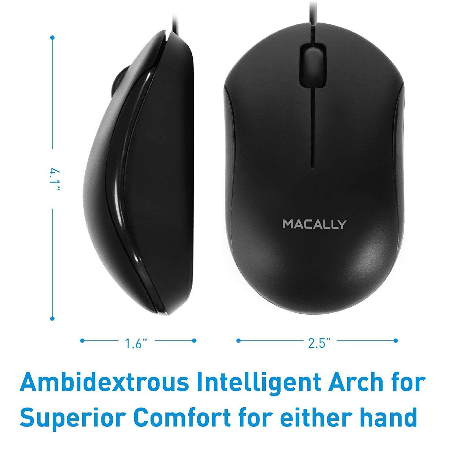 Macally USB Wired Computer Mouse with 3 Button, Scroll Wheel, 5 Foot Long Cord, Compatible with Windows PC, Apple MacBook Pro/Air, iMac, Mac Mini, Laptops