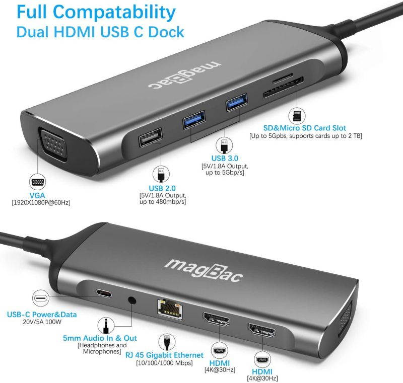 magBac Laptop Docking station is compatible with specific Thunderbolt 3, Type C Gen2 or full-featuredUSB-C Windows systems