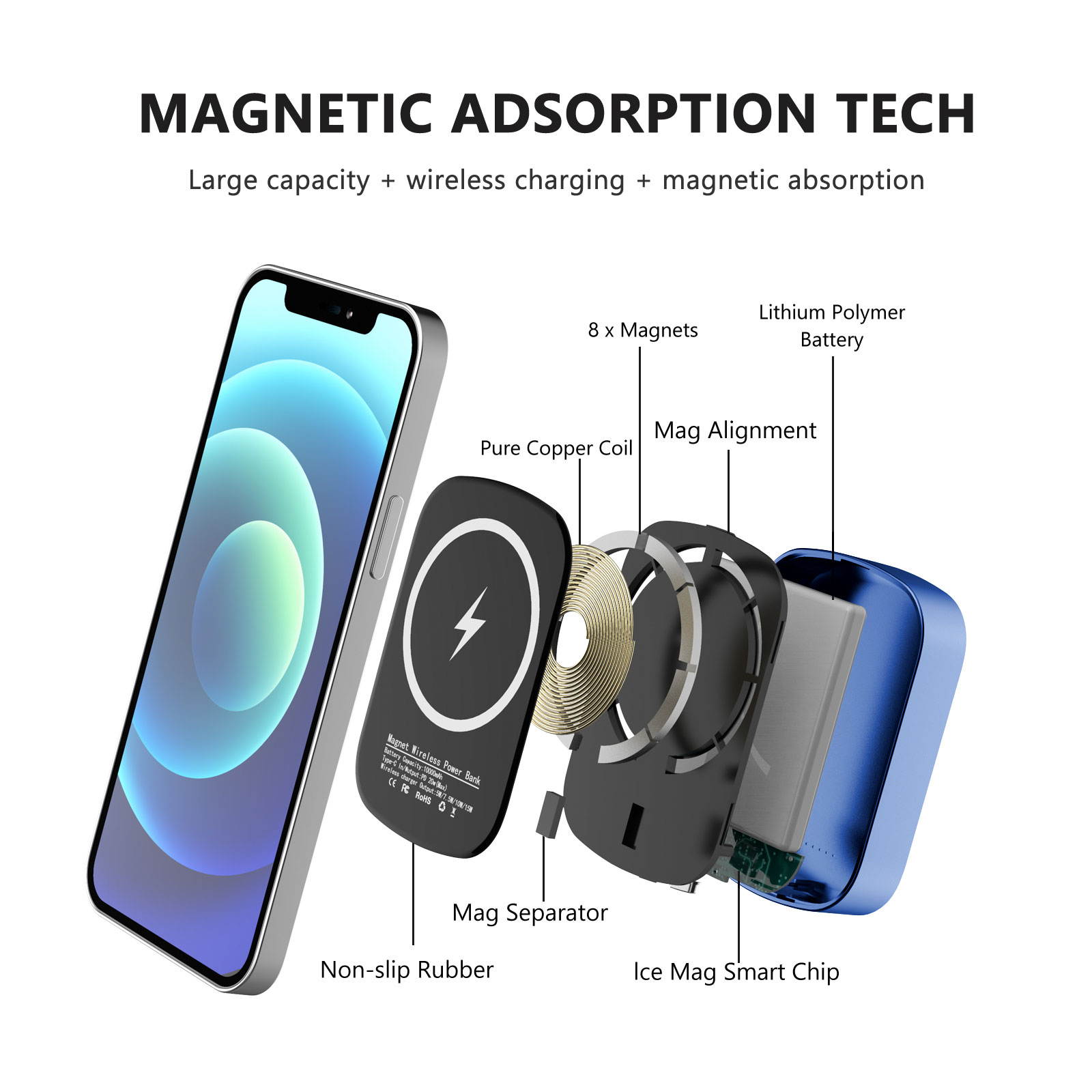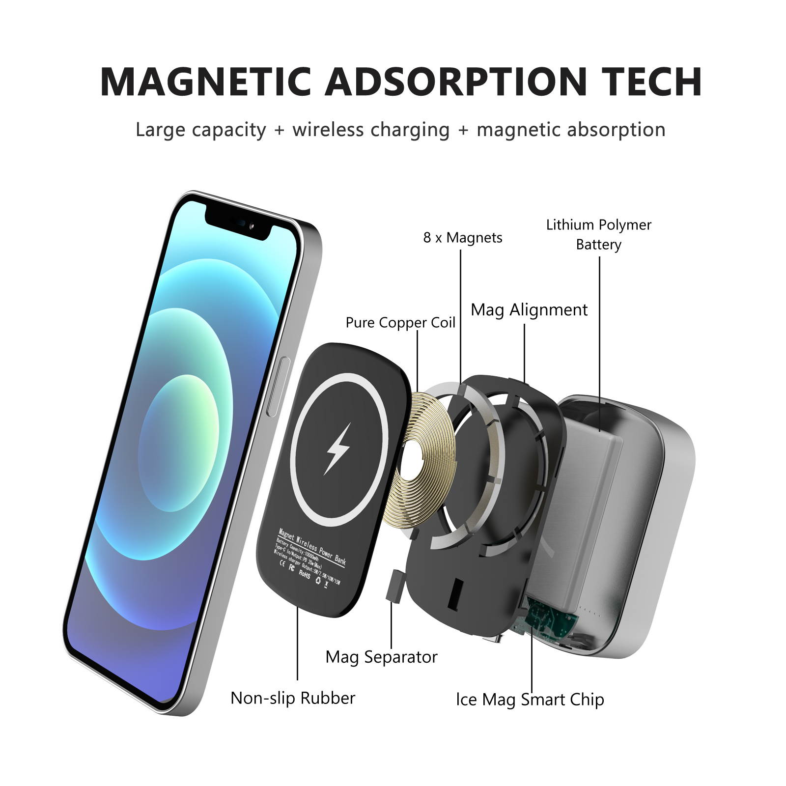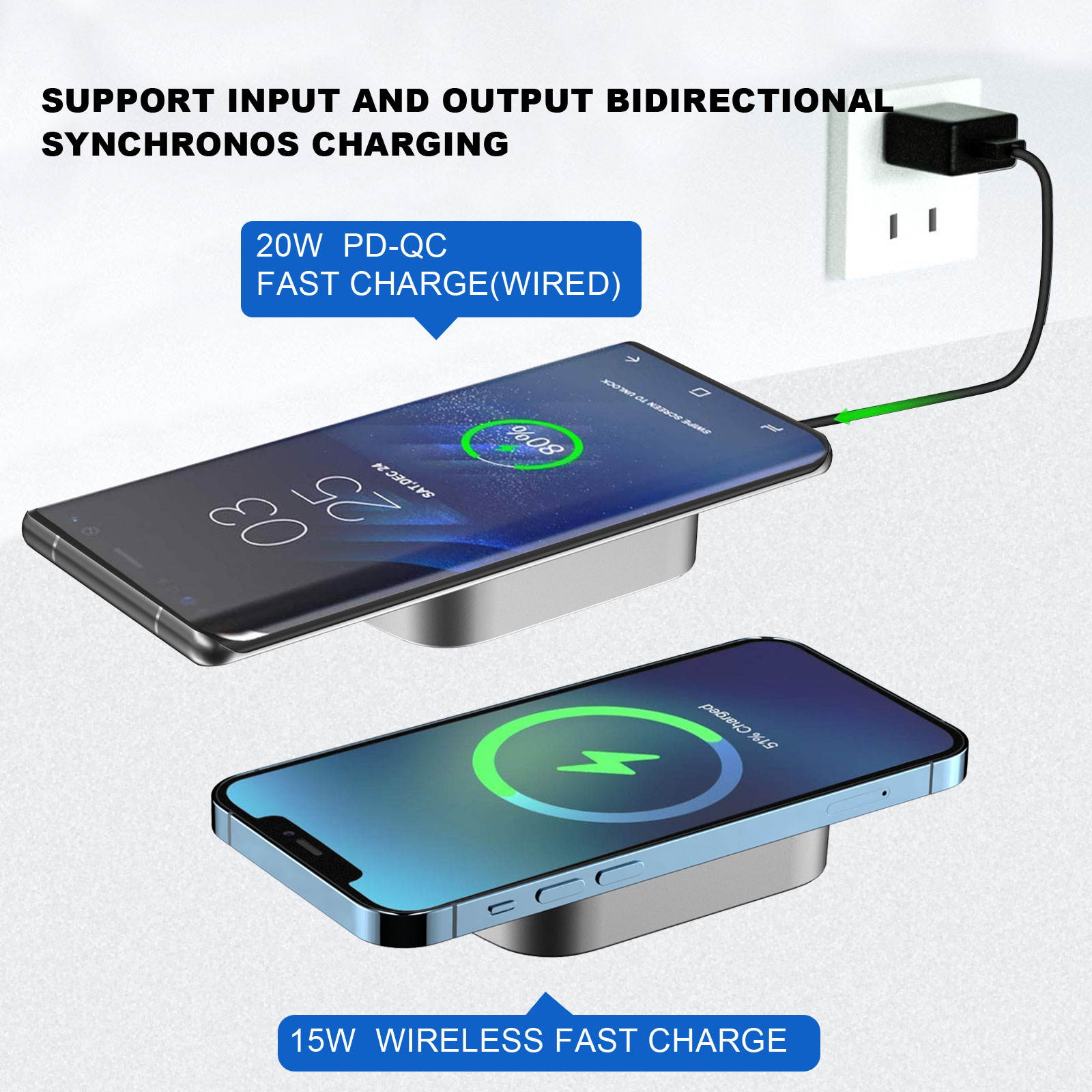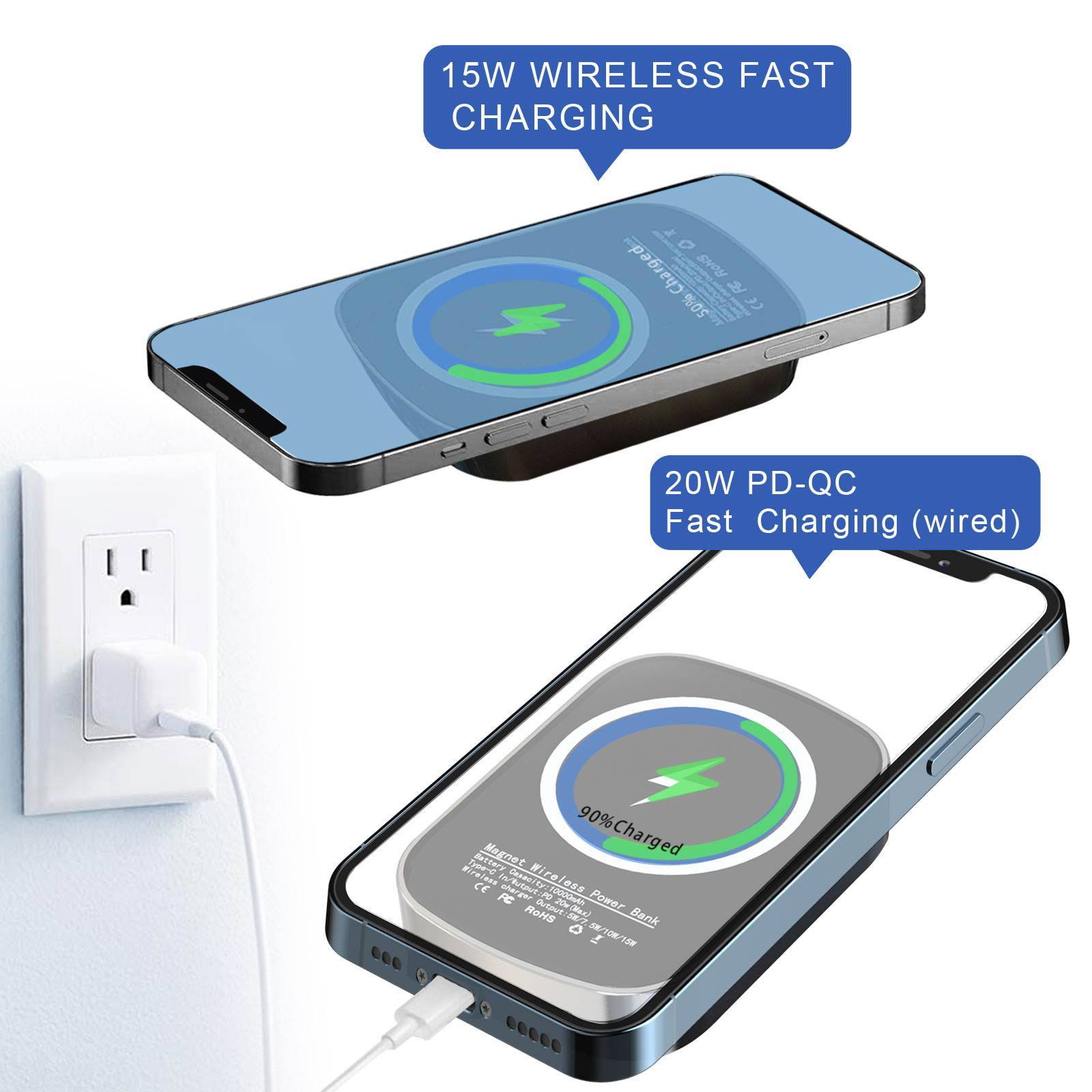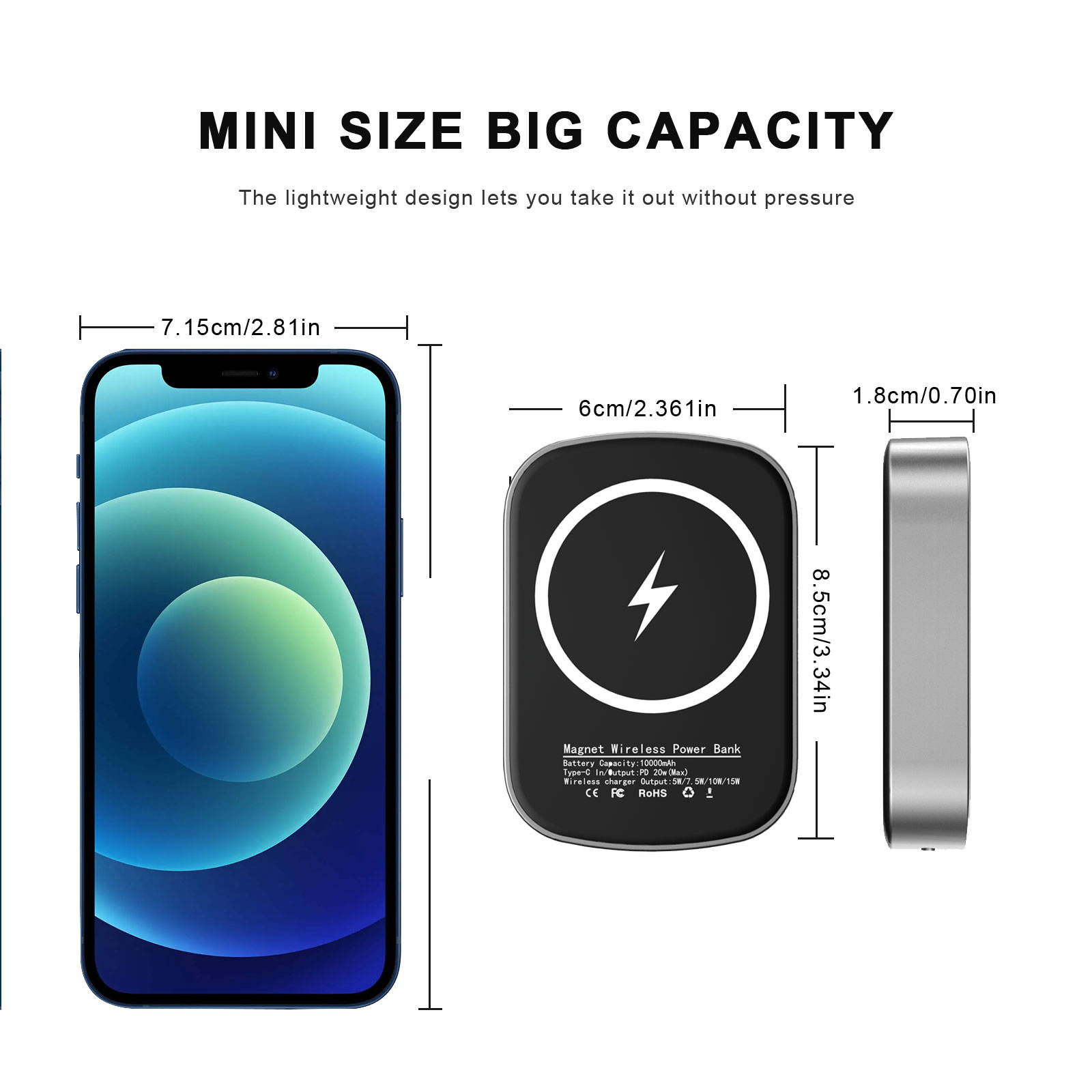 ?3 in 1 MAGNETIC POWER BANK?:The Mag-safe wireless charger is a multi-function charging combination of 10000mAh Power Bank+Wireless Charger+Magnetic Adsorption. It also supports 5W/ 7.5W/ 10W standard wireless charging. Besides that, Wired charging can reach 20W. The lightweight and compact design, great for use at home or putting in your bag for traveling.