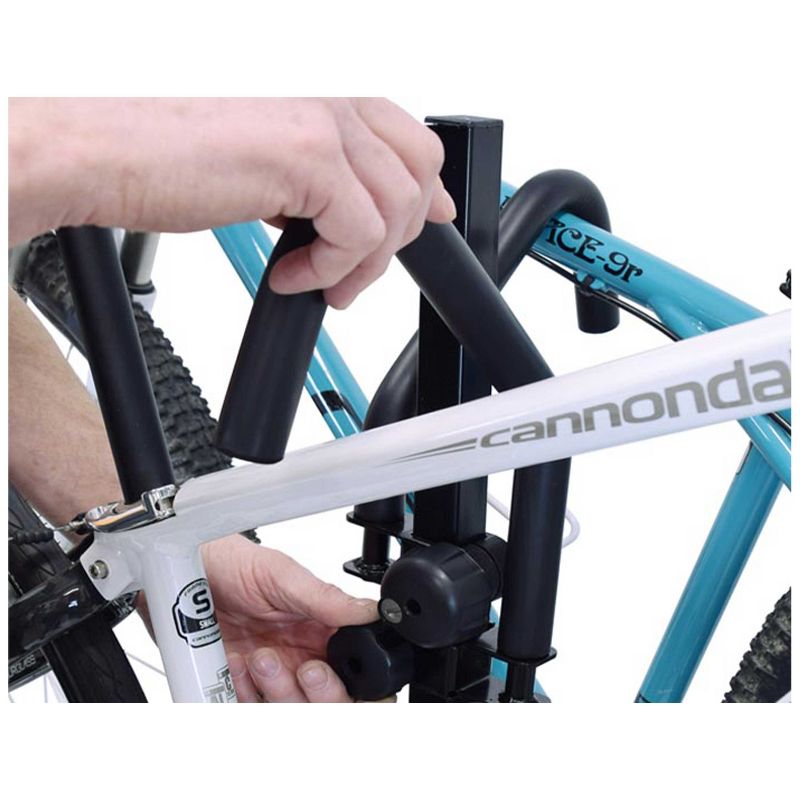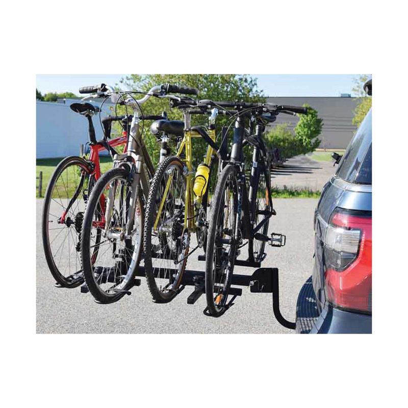 The MPG2137 Runwayâ„¢ HM4 is a well-designed, affordable hitch mount, platform style rack that safely carries up to four bikes. Padded center arms firmly hold the bike's top tubes for worry free transport. Features include tilt-down frame for easy access, wheel holders that prevent bike to bike contact, anti-wobble hitch pin and key lock security. All parts and workmanship are guaranteed with a Lifetime Limited Warranty.