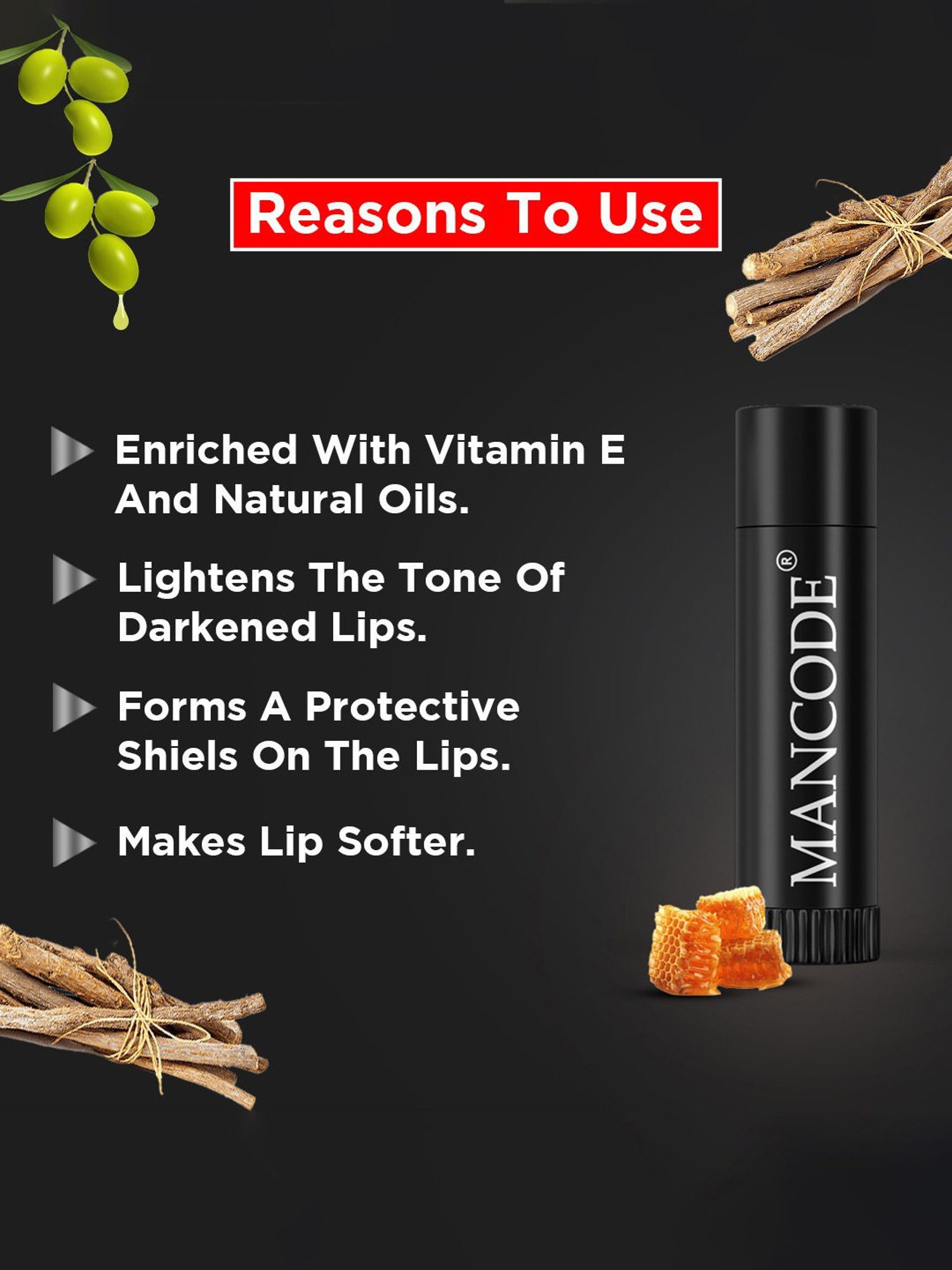 Introducing Mancode Lightening Lip Balm the ultimate solution for keeping your lips moisturized and looking their best. Crafted with the modern man in mind, this Mancode Lightening Lip Balm is specifically formulated to provide intense hydration and protection against the harsh elements, ensuring your lips stay smooth and comfortable throughout the day. Our advanced formula is designed to lock in moisture, preventing dryness and chapping even in the harshest conditions.