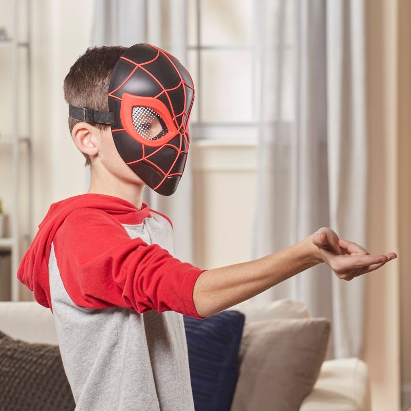 Kids can imagine suiting up like the wall-crawling hero Miles Morales with the Miles Morales Hero Mask. The eye lenses feature dotted graphic detailing inspired by the appearance of Miles Morales' mask. Plus, the mask includes a flexible band that fits most kids, so they can imagine slinging webs alongside Miles! Superpowers not included.