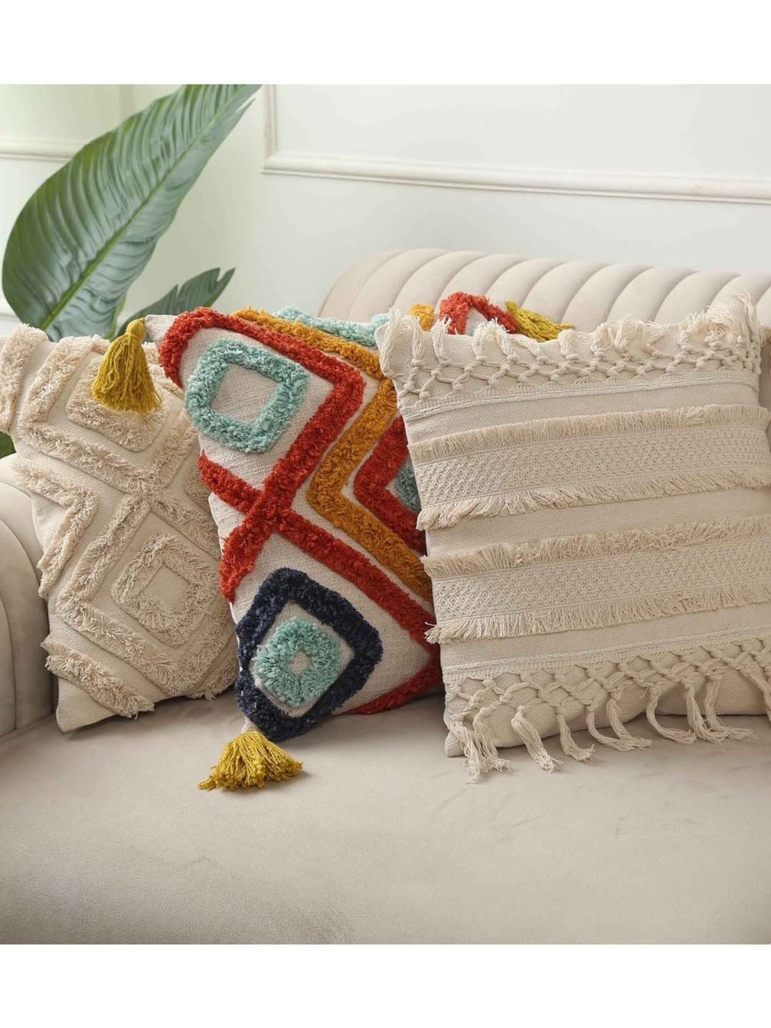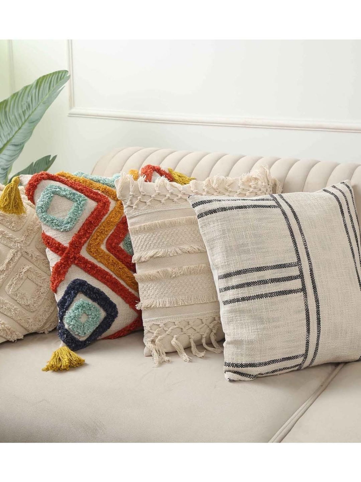A one-of-a-kind statement piece, handcrafted by Indian artisans, is the Ivy Cottage throw cushion cover that lends a whimsical, happy and carefree vibe to any space. This eclectic cotton piece carries a playful and cosy aesthetic making your living room or bedroom an inviting space to be in. Disclaimer: All other items in the image are only for display purposes and will not be a part of the delivery content.