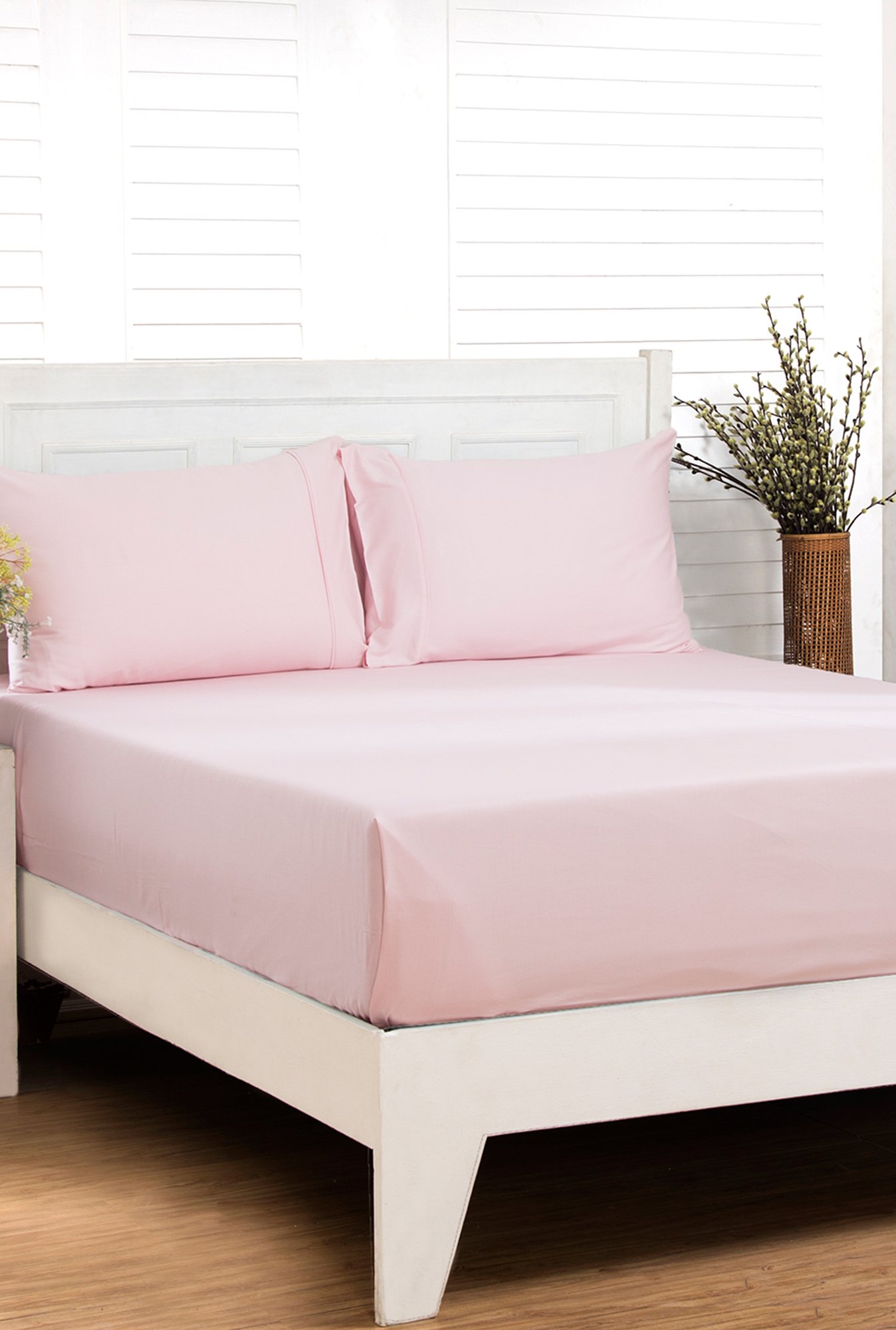 Add a refreshing zeal to your bedding with this pink bed sheet set from Maspar. This elegant set with a solid pattern comprises 1 double bed sheet and 2 pillow covers that will let you exhibit your love for home decor. Crafted from 100 percent cotton with a thread count of 200, this set will let you experience a delightful sleep.