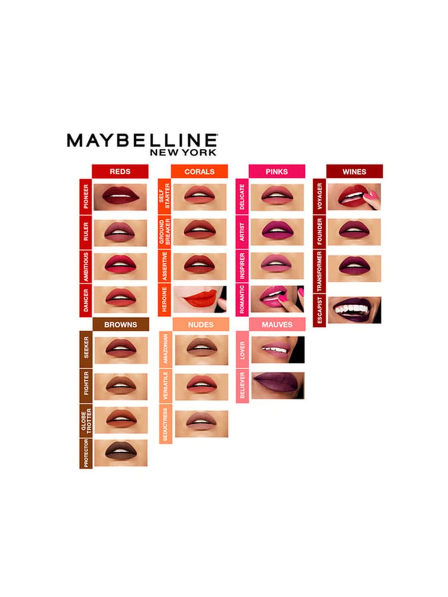 Define your lips with this liquid lipstick from Maybelline New York. It gives you a flawless matte finish. Intensely pigmented and long-lasting, this liquid lipstick does not dry out lips. It features a unique arrow applicator for a more precise liquid lipstick application.
