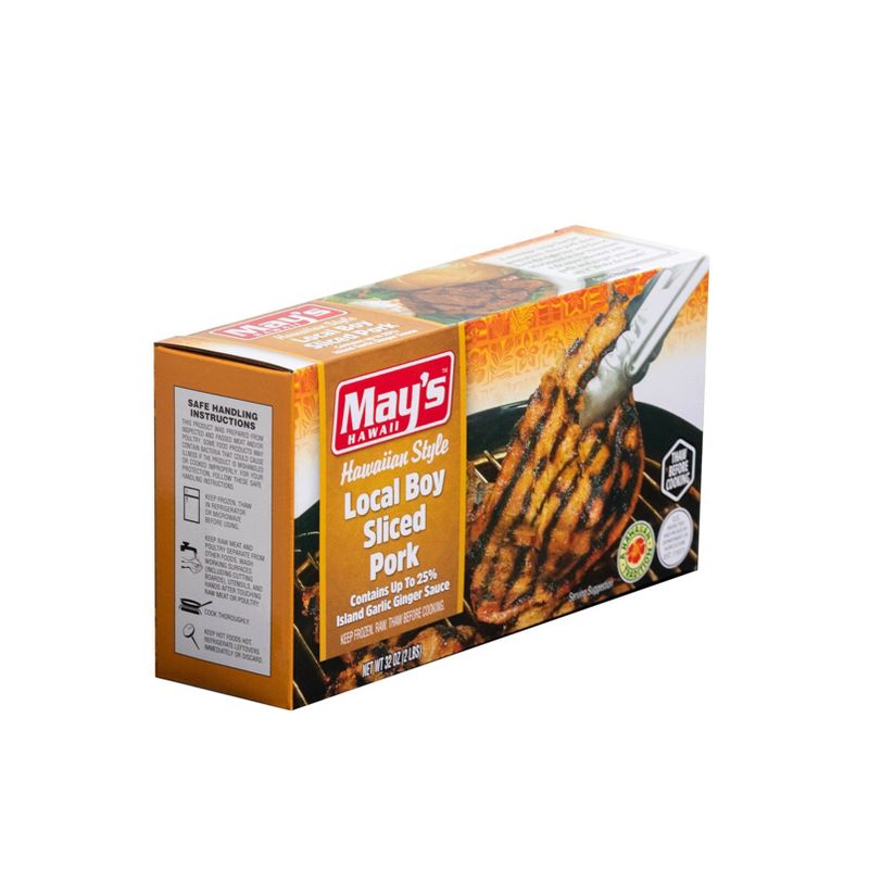 A nostalgic recipe, lost for generations, these pork slices have the right bite and flavor. Marinated in our proprietary Island Garlic Ginger sauce, wherever you are, it will bring you back home to Hawaii. When you want something different, something good, something to satisfy, take home May’s Hawaii Local Boy Sliced Pork. Great mouth-feel and a smooth flavor that isn’t sweet but creamy, unlike any sandwich meat out there. Piled high in a sandwich or over hot steaming rice, this meal will satisfy your craving for Hawaii's finest.