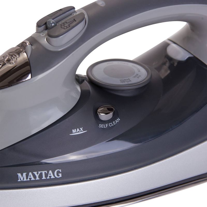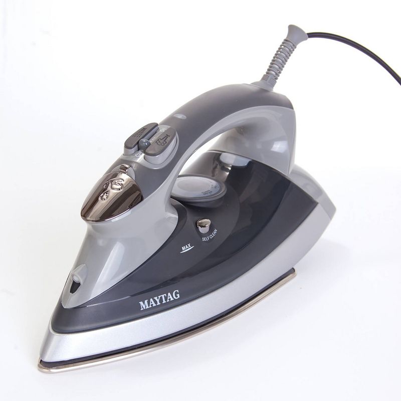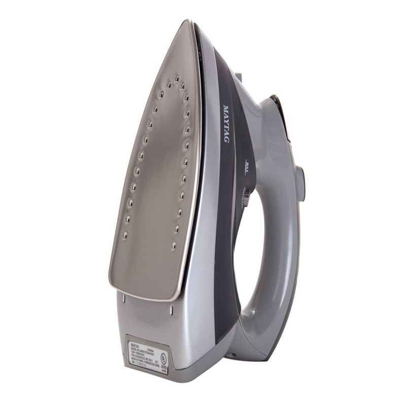 Maytag® M400 Iron with Speed Heat™ technology reaches full temperature in under a minute. It is the quickest way to get crisp, wrinkle-free garments. Using Speed Heat technology, the iron heats to full temperature in under a minute, and the adjustable thermostat makes the iron perfect for a range of fabrics, including cotton, linen, silk, wool, and nylon. Simply turn the dial for a precise temperature and ironing becomes quick and effortless for all your fabrics. The powerful steam regeneration function works in just three seconds, so you dont have to wait as you iron. Adjustable steam settings include variable steam control for steam ironing, vertical Steam Burst, and Water Spray functions.The iron has an anti-scale system with a stainless steel soleplate, so its durable and easy to maintain. The vertical steaming function allows you to steam hanging garments as well, with intuitive controls for steam bursts and water spray and a soft-touch handle for balance. Includes: Maytag Speed Heat Iron with 7oz tank capacity and 8ft cord. 2-year manufacturer warranty. US-Based Customer Support available.