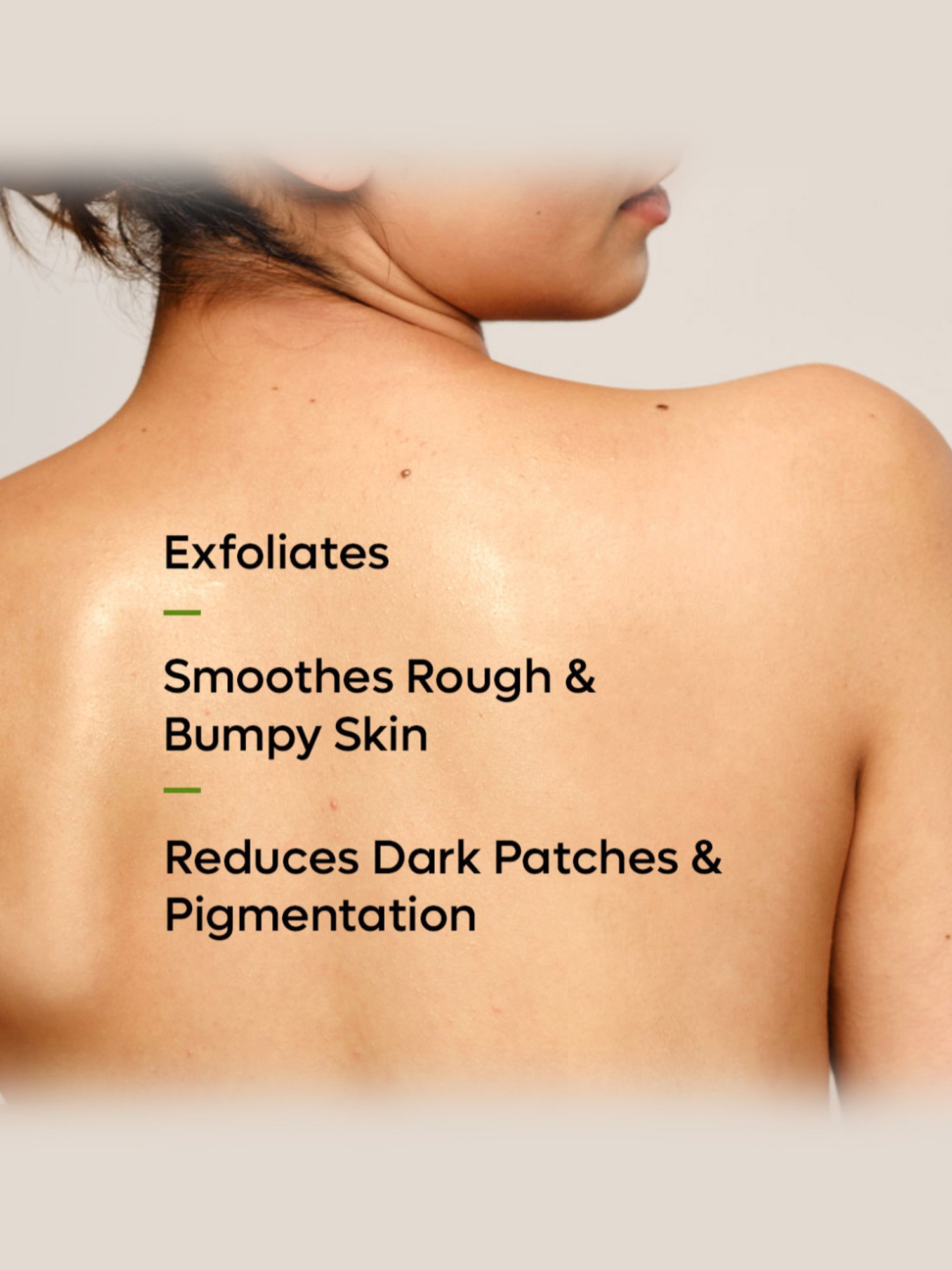 Composition: Body Exfoliator: Lactic Acid, Glycolic Acid, Niacinamide, Hyaluronic Acid, Caffeine, Green Tea leaf extract. Body Wash: Lactic Acid, Glycolic Acid, Caffeine, Green Tea leaf extract.