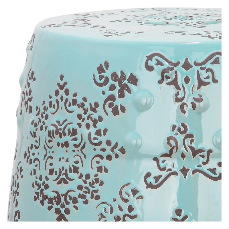 Adorned with lacy motifs adapted from Chinese silk brocade, the Medallion Garden Stool adds international flair to both indoor and outdoor spaces. With soft Gray florals on its robin’s egg blue ceramic, Medallion is great in pairs or by itself as a striking decorative centerpiece.