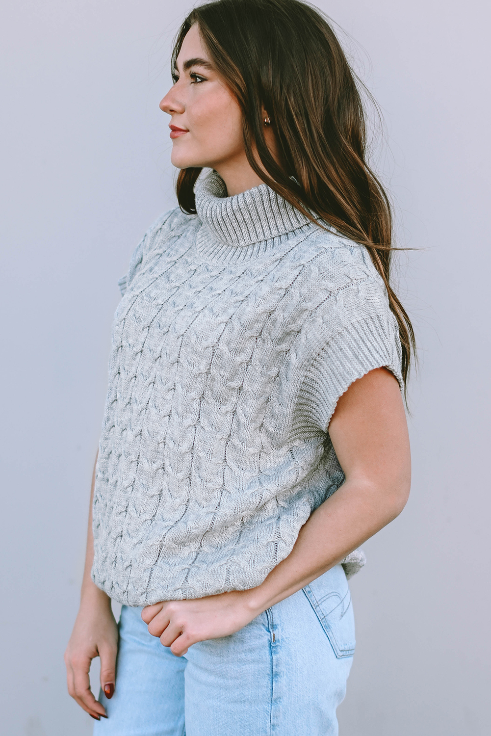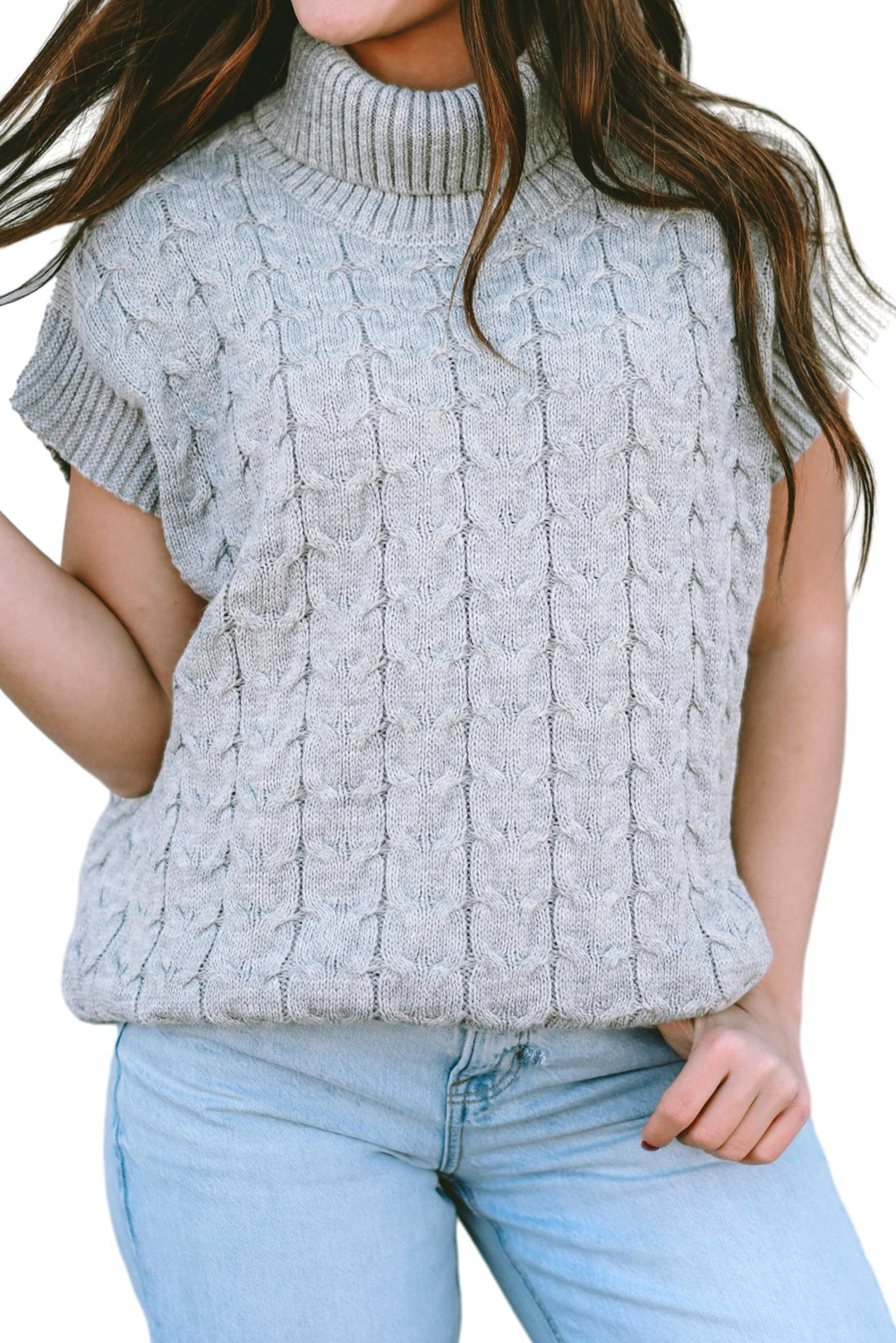 The cable knit texture adds a contemporary touch, while the turtleneck design offers a warm and cozy feel.