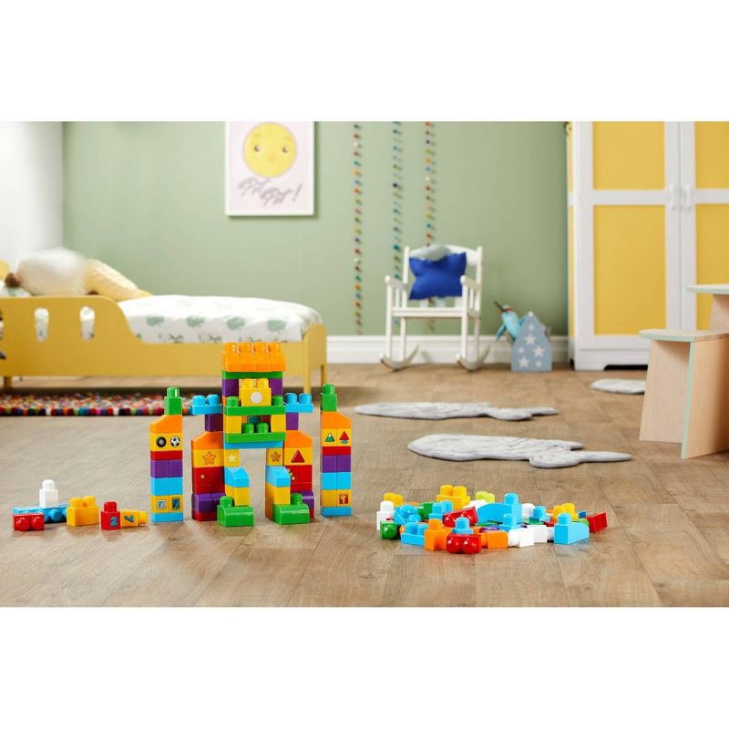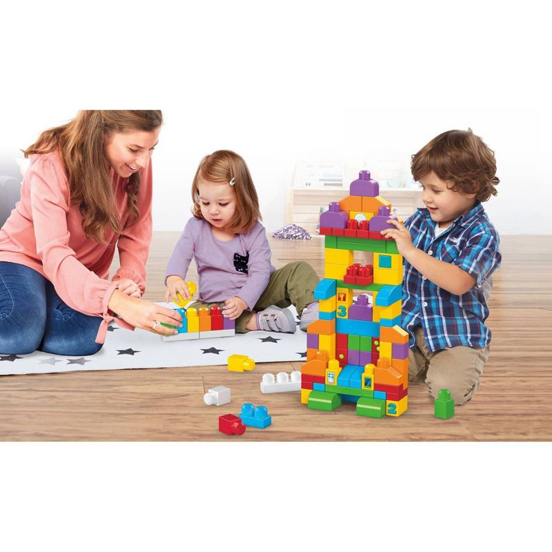 Build skills for school when you learn colors, numbers, shapes and more! Little tots can get ready for school when they use 150 big building blocks to learn everything from shapes, colors, and counting to math and problem solving! Made for toddlers' little hands and curious minds, the colorful blocks are printed with numbers and pictograms as well as shapes and objects for practicing association and other classroom skills. Spark creativity and use the blocks to build and rebuild anything you imagine before putting everything away in the handy storage bag! Ideal for ages 1 to 5