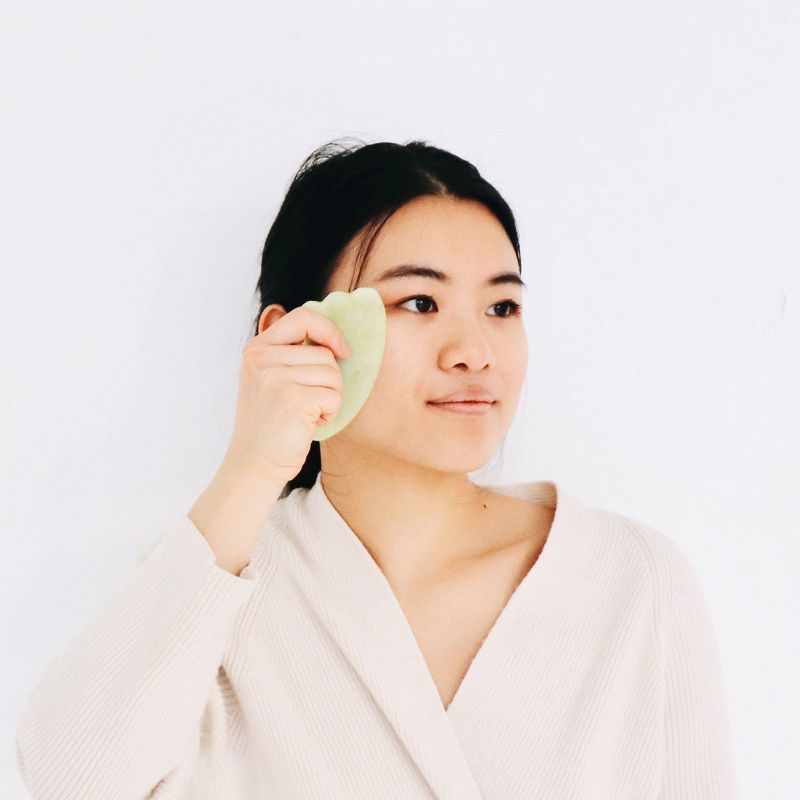 The Jade Gua Sha Facial Massage Beauty Tool is shaped to allow you to reach every corner of the face. Suitable for all skin types, this gua sha tool leaves your skin feeling lifted and firmed.