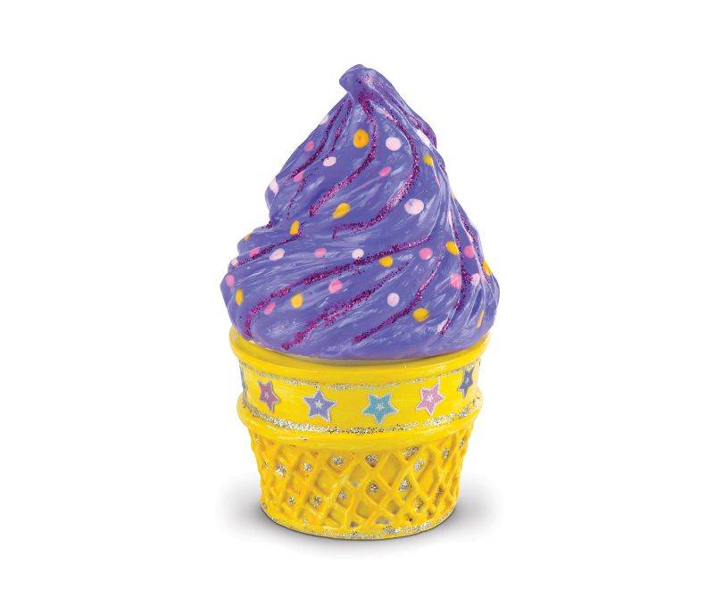 With this engaging set, kids can decorate 3 extra-sweet crafts! The swirly ice cream cone and cherry-topped cupcake boxes are irresistible places to store treasures, and the layer-cake bank lets you save your change in style. Also includes 75 foil stickers, 6 pots of paint, 3 paintbrushes, and 3 glitter glues to make these crafts as unique as your own style!