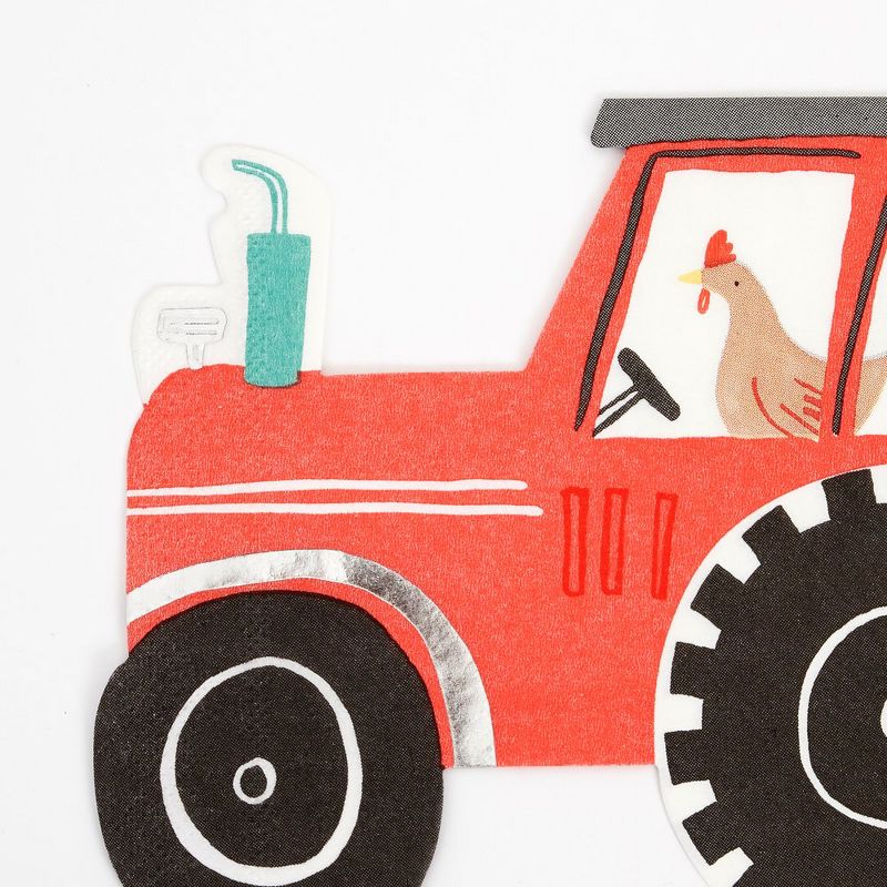 • The charming tractor napkins, with a cheeky rooster at the wheel, will be sure to make your party guests smile. (Folded dimensions: 6.5 x 5.5 inches)