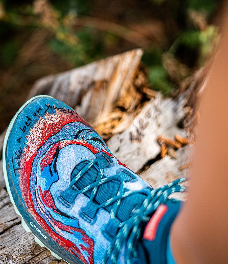 - Featuring a print inspired by the online community Trail Sisters, this protective, women's specific trail runner is made with Q FORM® 2 stability technology and a Vibram® outsole for confidence on moderate terrain