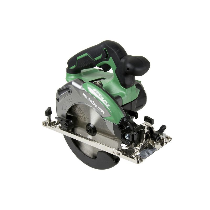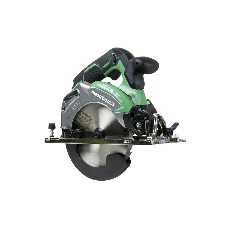 The revolutionary new 18V Slide Brushless 6-1/2 in. Deep Cut Circular Saw from Metabo HPT reaches cutting depths that some 7-1/4 in. saws cannot. The C18DBALP4MR achieves a remarkable 2-19/32 in. depth of cut making it one of the deepest cutting cordless circular saws on the market. The Metabo HPT brushless motor reduces size and weight, while increasing power and performance. The C18DBALP4MR is equipped with a silent mode (auto mode) setting that reduces the max motor RPM enabling efficient work with less noise. When the load increases during silent mode, the tool will automatically switch over to Power mode and revert back to Silent mode when the load decreases. Metabo HPT has various safety features such as overload protection. This cuts off the power to the motor in the event of overload or an apparent reduction in rotational speed during operation thereby protecting the user from harm and the motor and battery from damage. The C18DBALP4MR is also fitted with further safety features such as soft start to reduce kick back on start-up and an electric brake that rapidly stops blade rotation once the trigger is released. At only 6.8 lbs (equipped with a Compact 3.0Ah battery model BSL1830C) and a detailed center balance design, the C18DBALP4MR is one of the most lightweight, compact and powerful cordless circular saws on the market.