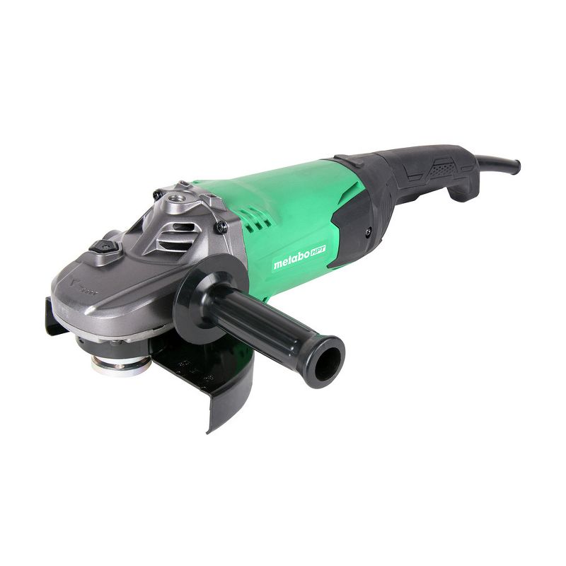 The Metabo HPT 7 in. 15 Amp Angle Grinder uses a heavy-duty 15.0 amp motor to provide you with 3,150 Watts of forcible output power for the toughest grinding jobs. It offers a no-load speed of 8,500 RPM, while the commercial-grade helical cut gears increase durability. A specially sealed armature coil reduces wear caused by ingested debris, and convenient carbon brush access allows you to replace the brush as needed to greatly prolong the life of the tool. An added spindle lock provides safe and easy disc changes. Weighing 9.5 lb., its ergonomic design makes it easy to use for longer periods with less fatigue. The trigger switch and removable side handle also increase comfort and control.