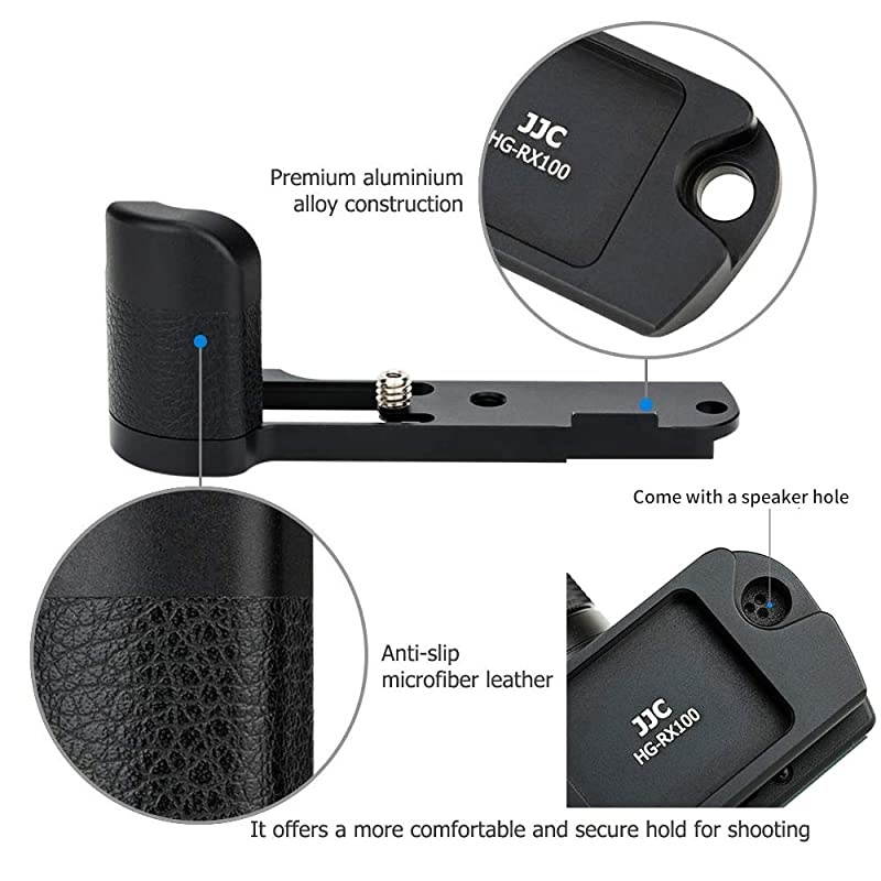 Size: For Sony RX100 VI VA V IV III II Compatible with below cameras: Sony RX100VI RX100VA RX100V RX100IV RX100III RX100II RX100 HG-RX100 Camera Hand Grip is designed for Sony RX100 series cameras. It is made of premium aluminium alloy, which is sturdy and durable. This kind of metal construction is also a perfect match to the camera body. The hand grip is anti-slip and can provide you with a kind of comfortable hand feeling due to the microfiber leather on its surface. After attaching the hand grip to your camera, you will enjoy a more comfortable and secure hold for your shooting. The large opening on the bottom allows you to remove your battery and memory card without taking off the whole grip. It also comes with a speaker hole for easily accessing to your camera speaker. Featuring chamfer design, this hand grip will not affect the usage of your fold-out screen. Moreover, you can also mount this hand grip to the tripod or other devices via the 1/4"-20 tripod socket.
